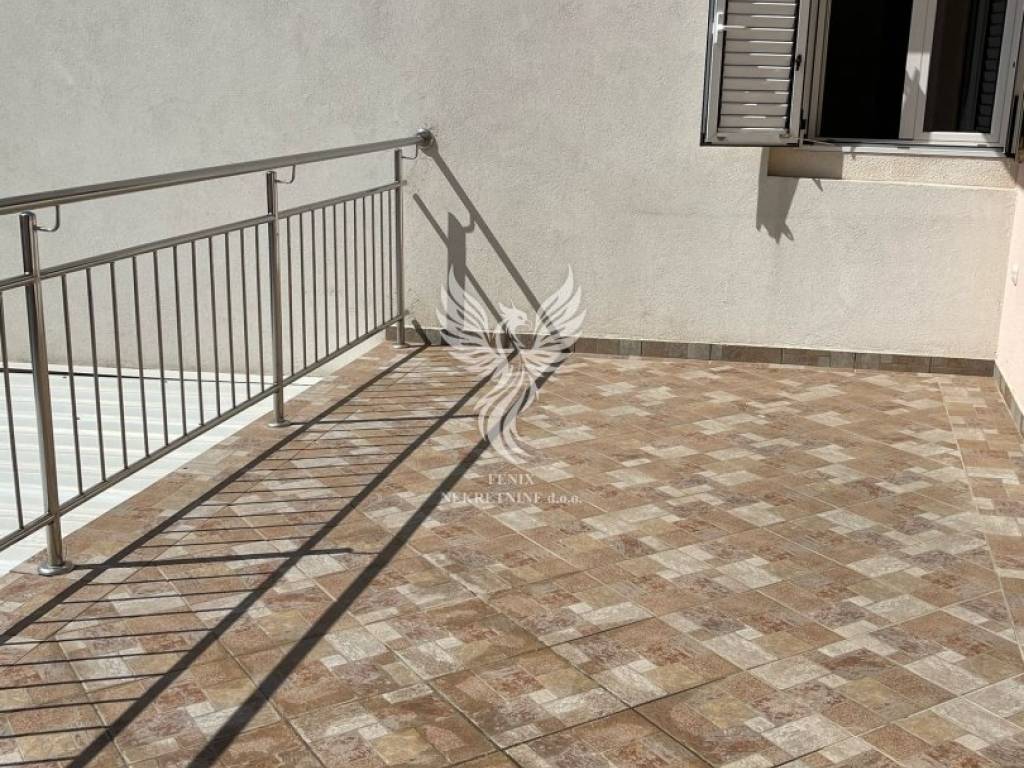 Prodaje se izvrstan stan u Šibeniku, nadomak svim važnim sadržajima za život. Sam stan se sastoji od kuhinje s blagovaonicom, dnevnog boravka, wc-a, kupaonice, dva degežman hodnika, triju soba, bakona i predivne, prostrane terase. Dvije od tri sobe imaju izlaz na balkon. Stan je kompletno opremljen s namještajem, kojeg prodavatelj i ostavlja u stanu. Kroz cijeli stan je provedeno centralno grijanje, a i isti je klimatiziran. Vlasnici koriste dva parkirna mjesta, jedno s gornje strane, odnosno s magistrale i drugo odmah ispod stana.