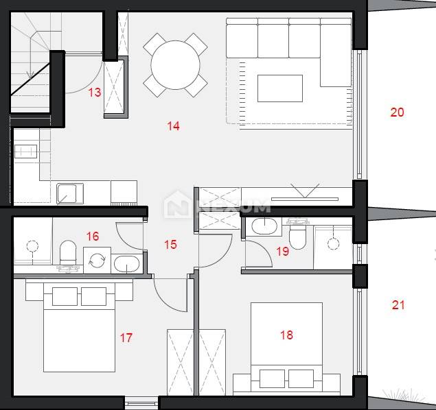 Posredujemo u prodaji dvosobnog stana u prizemlju novogradnje. Ukupna stambena površina iznosi 72,88 m², a sastoji se od dvije spavaće sobe, dvije kupaonice, hodnika, dnevnog boravka s kuhinjom i blagovaonicom te dvije terase. Jedna od spavaćih soba ima vlastitu kupaonicu i direktan izlaz na terasu. Stanu pripada jedno vanjsko parkirno mjesto, a ispred zgrade će biti zajednički bazen na korištenje svim stanarima. Iz stana se pruža pogled na more.