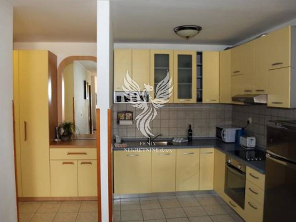 Stan se sastoji od ulaznog prostora, prostrane kuhinje s dnevnim boravkom i blagovaonom, spavaće sobe s vlastitom kupaonicom, dodatne kupaonice te prostrane terase. Uz stan je moguće kupiti i garažno mjesto sa spremištem (20,75 m2). Stan je kompletno namješten i idealan je za svakodnevni život ili kao investicija. Moguća je zamjena i za manji stan u Splitu uz nadoplatu.