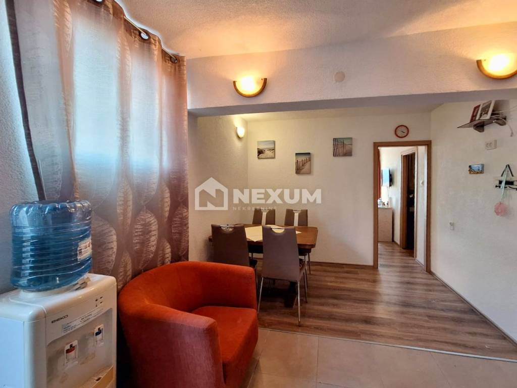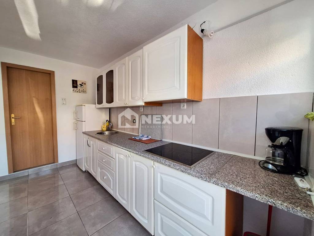 U prizemlju nalaze se dva apartmana površine oko 45 m², s dnevnim boravkom, kuhinjom i blagovaonicom, spavaćom sobom, kupaonicom te terasom s prirodnom hladovinom – idealno mjesto za jutarnju kavu ili opuštanje uz zalazak sunca. Na prvom katu smještena su još dva apartmana s istom površinom, prostranim dnevnim boravkom, blagovaonicom i opremljenom kuhinjom, spavaćom sobom, kupaonicom i terasom s prekrasnim pogledom na more. Svi apartmani su klimatizirani i prodaju se potpuno namješteni, što omogućuje novom vlasniku da odmah uživa u uređenom prostoru. Uz kuću pripadaju i parkirna mjesta.
