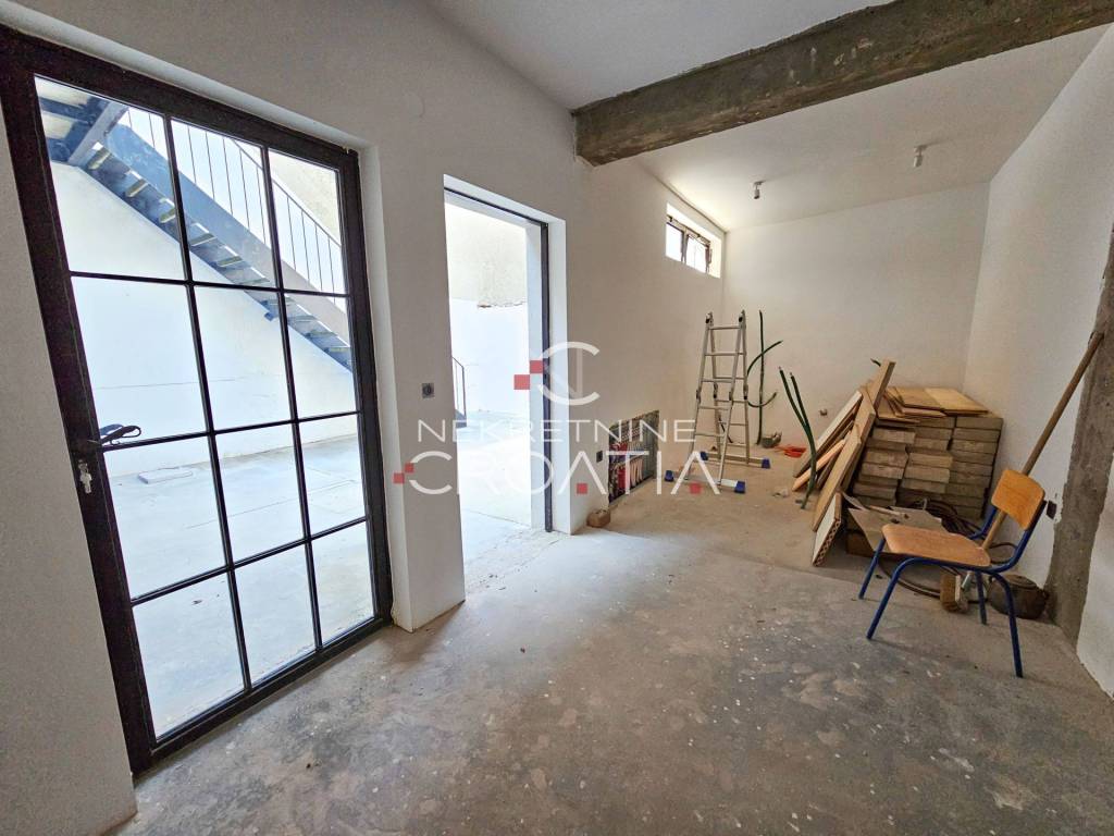 Predviđena mogućnost dva poslovna prostora u prizemlju, a kat i potkrovlje predviđeni za stanovanje.