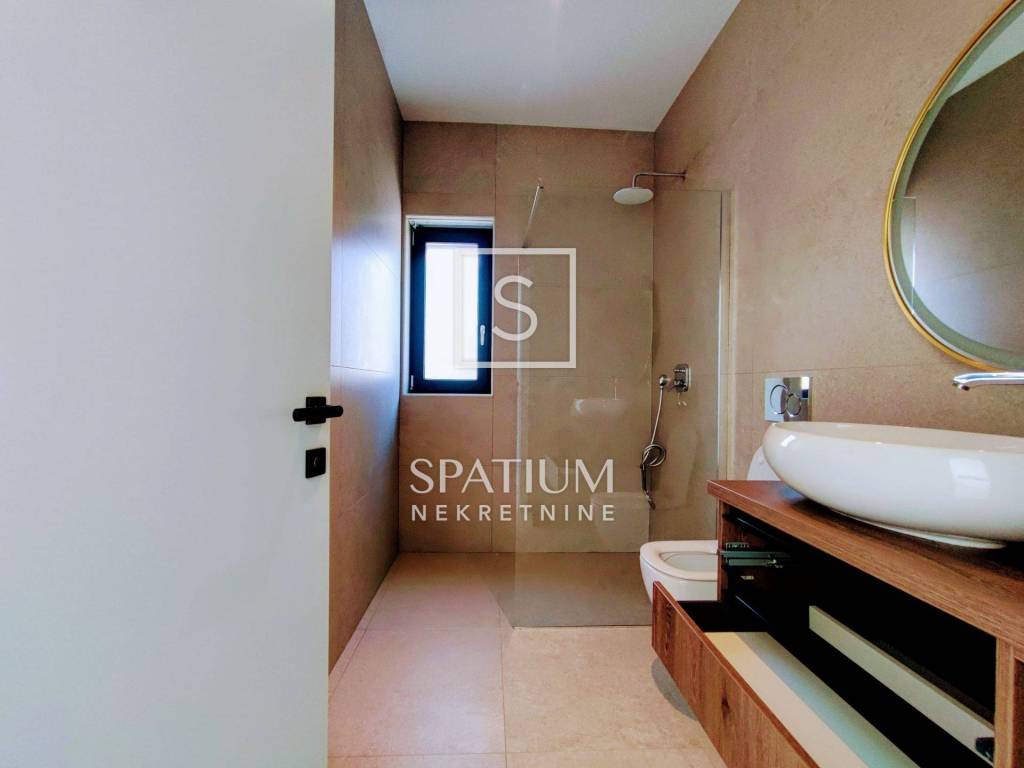 U gradnji su korišteni najkvalitetniji materijali, a kamen i drvo dominiraju interijerom, čineći svaki kutak posebnom oazom. Namještaj je izrađen po mjeri, pružajući dodatnu notu luksuza.