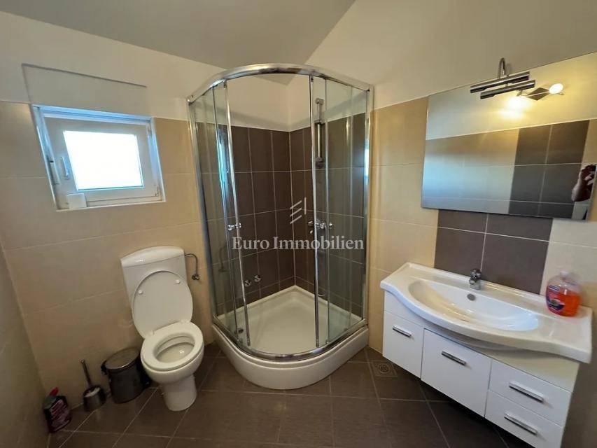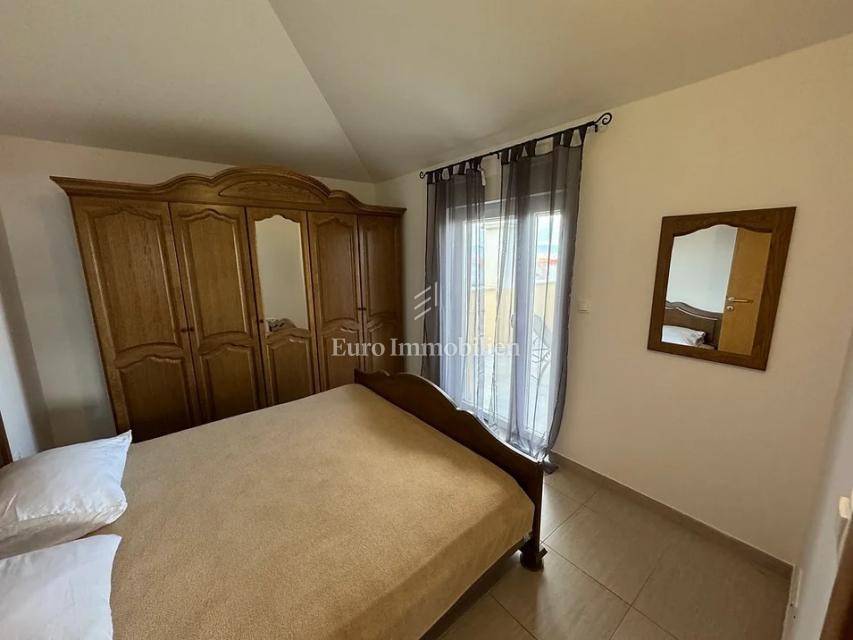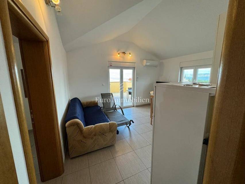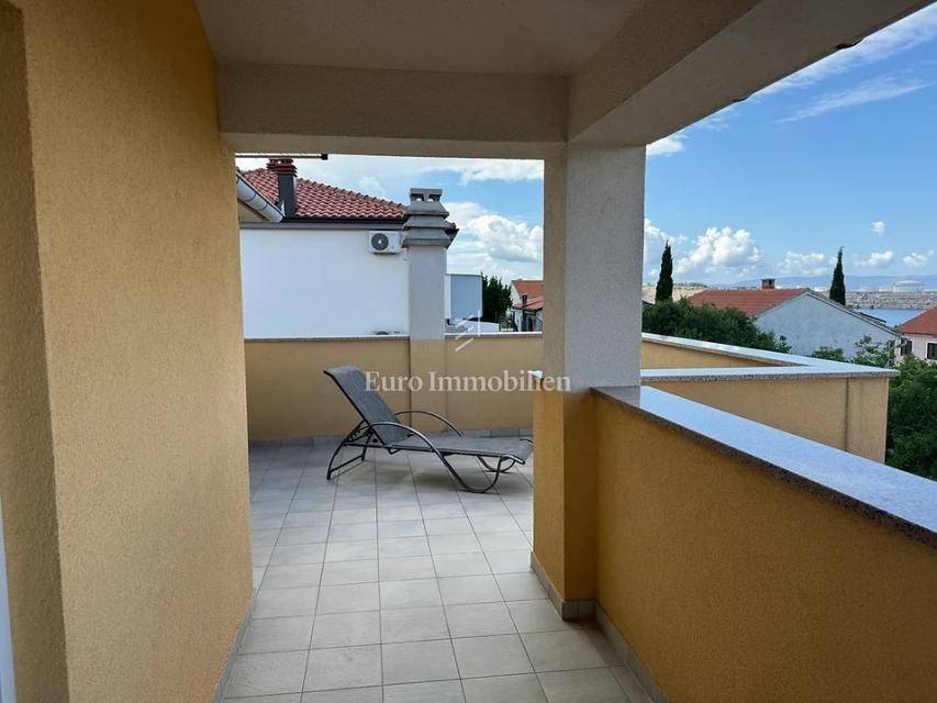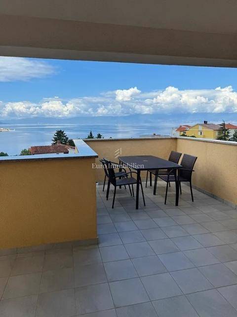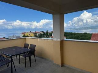 Otok Krk, Omišalj, prodaje se apartman na drugom katu površine 80 m2. Apartman se sastoji od dnevnog boravka s kuhinjom i blagovaonom, velike loggie s otvorenim pogledom na more, dvije spavaće sobe, kupaonice i spremišta. Apartman se prodaje s namještajem i opremom, u potpunosti spreman za korištenje. U prizemlju je moguće korištenje djela okućnice s grillom, a također mu pripada podrum od 7 m2 i jedno parkirno mjesto. Prilika za vlastito korištenje ili turistički najam.