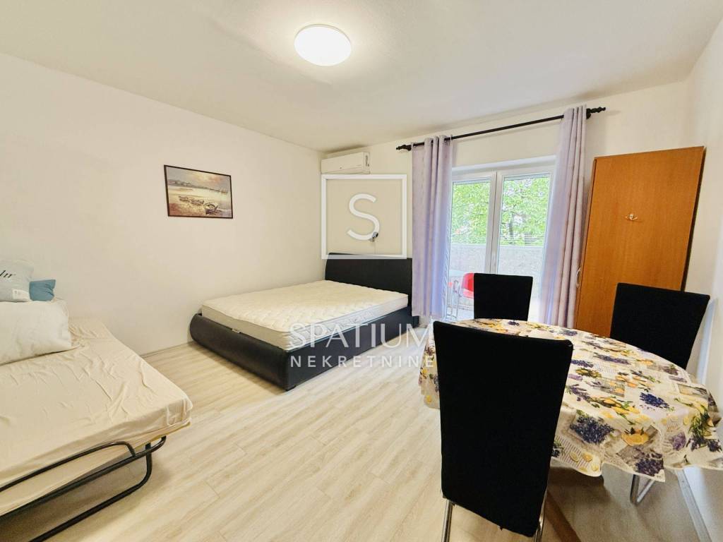 KRALJEVICA, u ponudu smo dobili garsonijeru stambene površine 28m2 koja se nalazi u urednoj stambenoj zgradi smještenoj na mirnoj i dobroj lokaciji u Kraljevici samo 50m od mora i plaže! Stan je adaptiran 2023. godine te se sastoji od ulaznog hodnika, kuhinje, dnevnog boravka s blagovaonicom, kupaonice i balkona s djelomičnim pogledom na more. Dnevni boravak sadrži dva ležaja, a stan je kompletno opremljen i klimatiziran te ima PVC stolariju. Stanu pripada i pomoćni prostor u prizemlju, te zajedničko parkiralište za sve stanare u krugu zgrade.