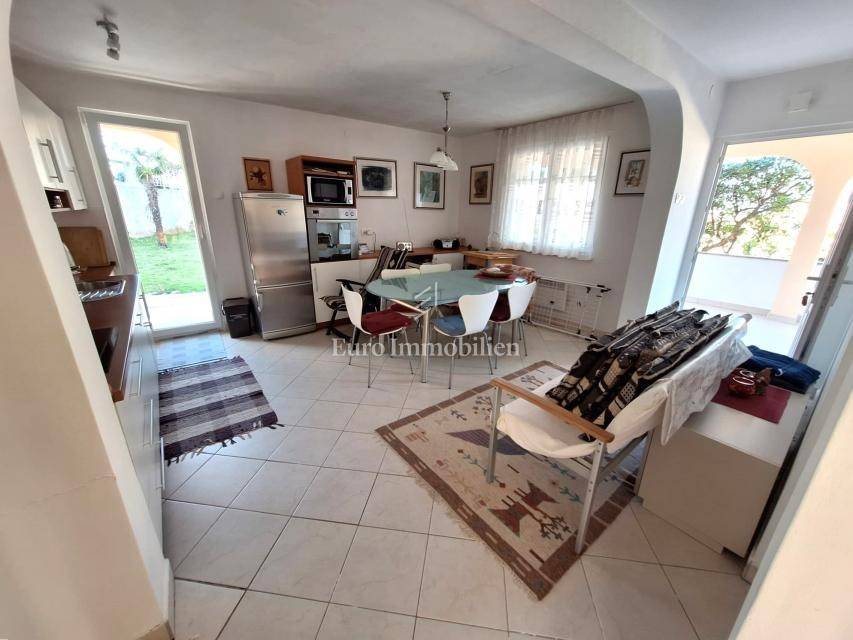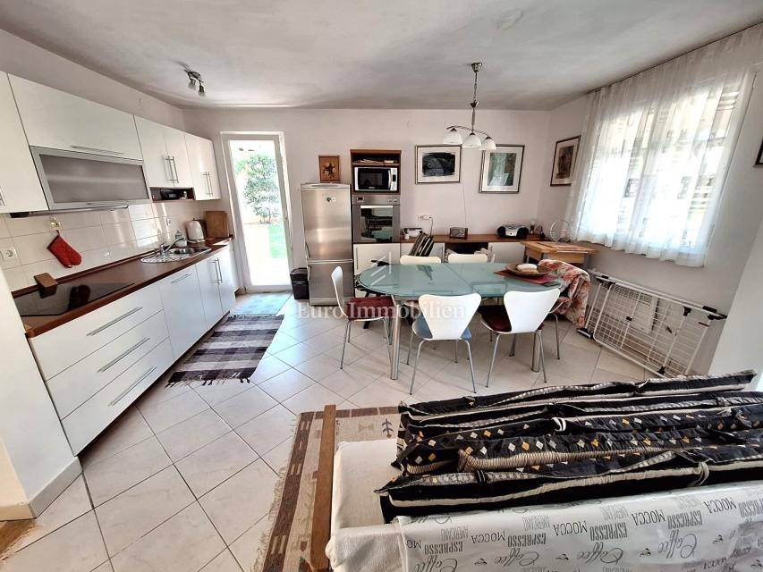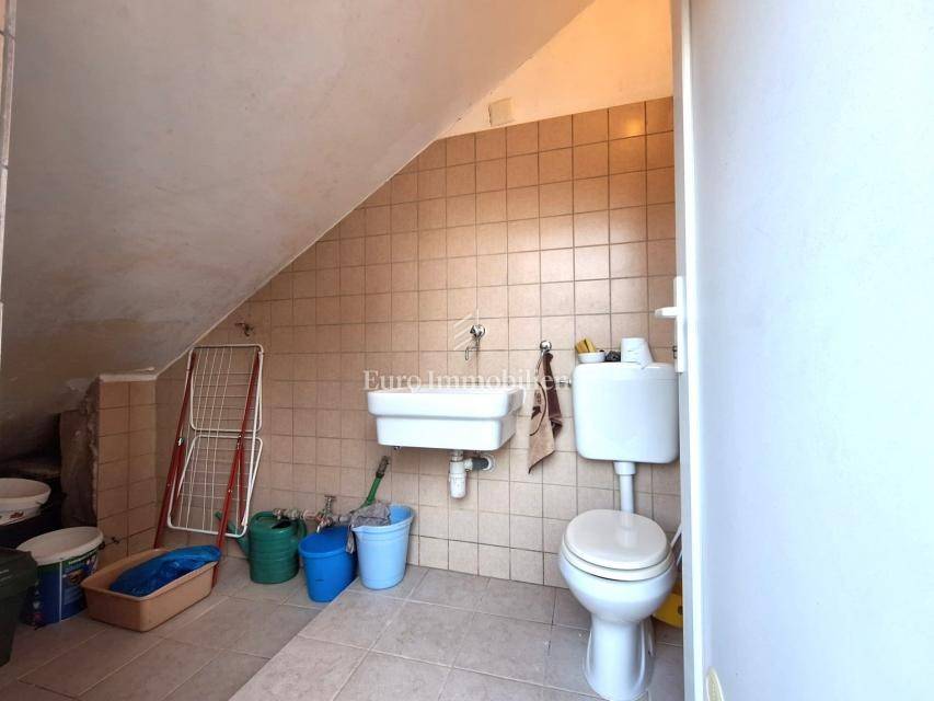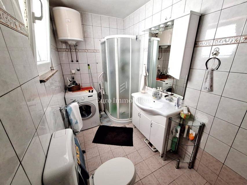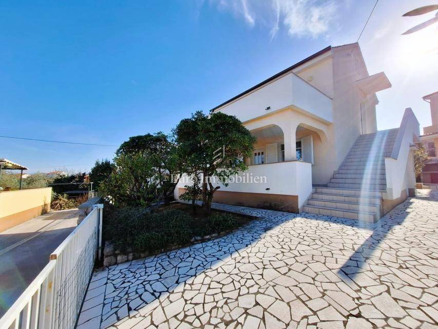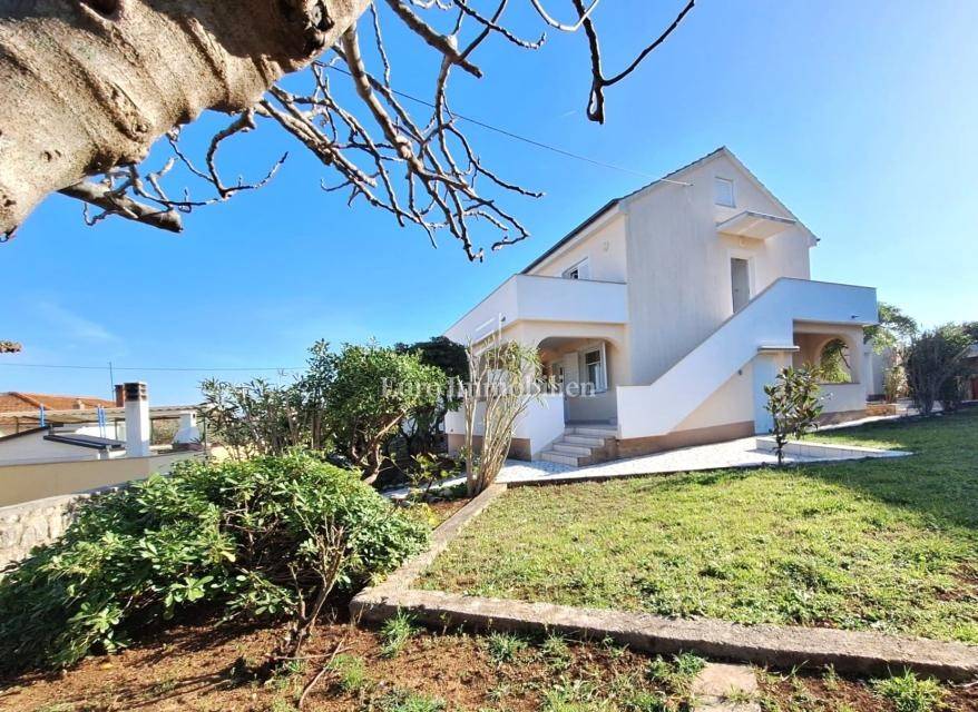 Kuća na prodaju površine cca 180 m2 s 450 m2 pripadajuće okućnice. Kuća je samostojeća i sastoji se od dvije etaže - prizemlja i kata. Na svakoj etaži je po jedan stan s dvije spavaće sobe, dnevnim boravkom, kuhinjom i blagovaonom, kupaonom, hodnikom i prostranim terasama. Kuća je namještena i ima predivan pogled na more.