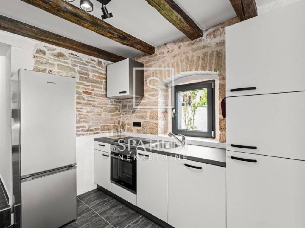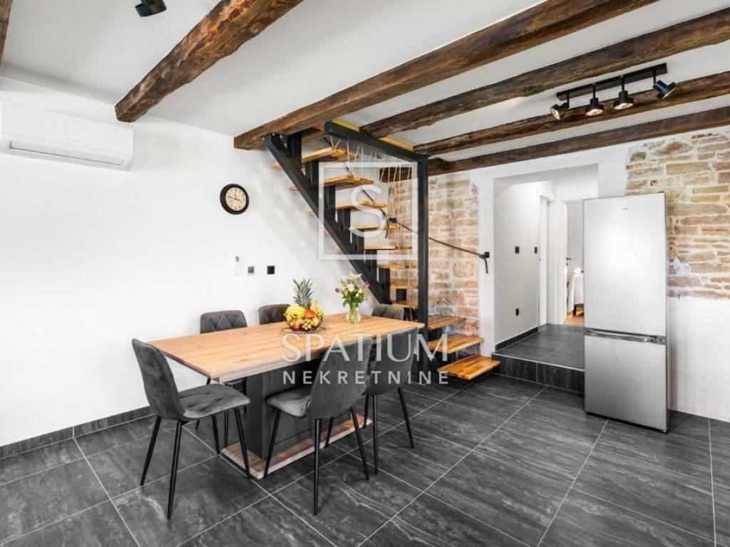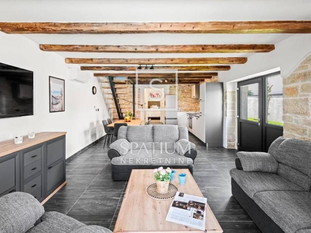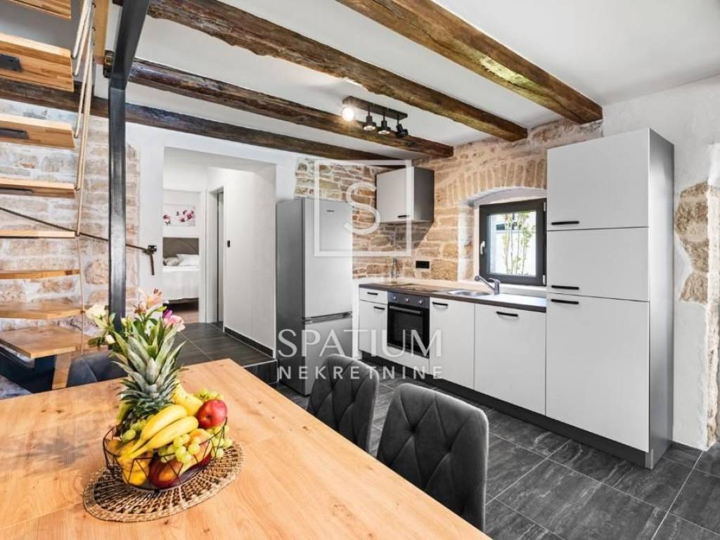 POREČ, u ponudu smo dobili kamenu samostojeću kuću sa bazenom ukupne stambene površine 140 m2. Prizemlje se sastoji otvorenog koncepta dnevnog boravka, kuhinje i blagovaone sa jednom spavaćom sobom, kupaonicom i vešerajem. Na katu se nalaze dvije spavaće sobe, svaka sa vlastitom kupaonom. U dvorištu površine 538 m2 se nalazi sunčalište sa bazenom te natkrivena ljetna kuhinja sa kaminom, te jedno mjesto za parkirno mjesto. Nekretnina je adaptirana, u svim prostorijama su klima uređaji za grijanje i hlađenje te podno grijanje sa svim novim instalacijama struje i vode. Okoliš je uređen travnjakom, mediteranskim biljem i maslinama. Radi svoje mikrolokacije i opremljenosti ovaj objekt nudi idealne uvjete za bavljenje turističkom djelatnošću kao i za obiteljsko dugoročno uživanje.