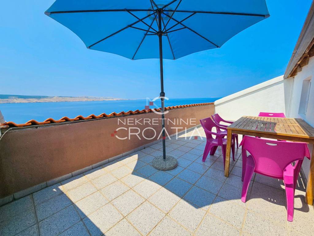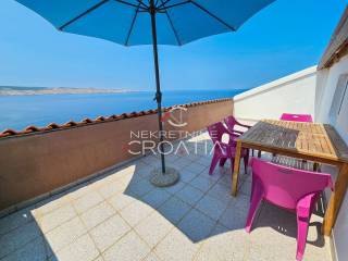 Odlično uređena plaža sa tušem (mir i privatnost osigurava konfiguracija zemljišta), kristalno čistim morem i neometanim pogledom na otoke Pag, Rab i Dolin.