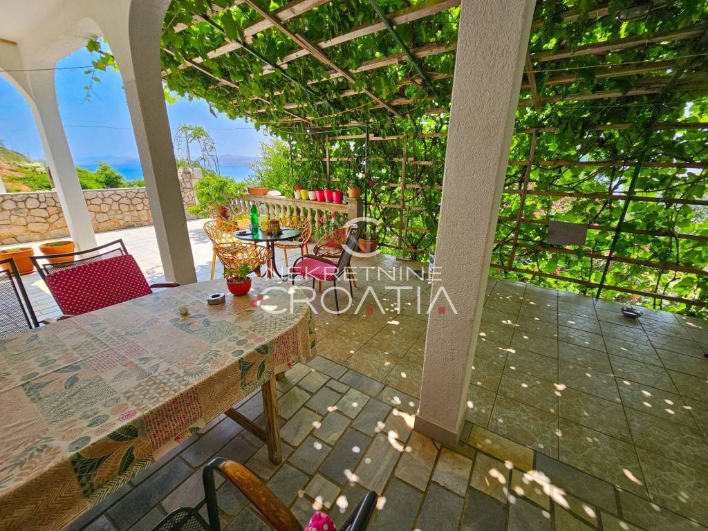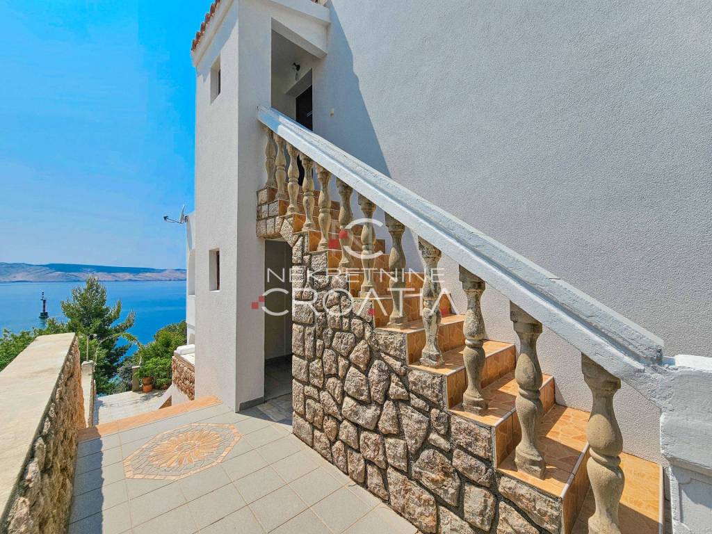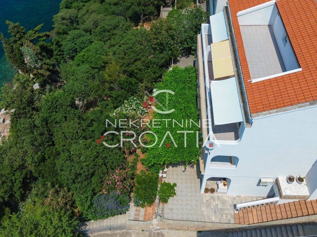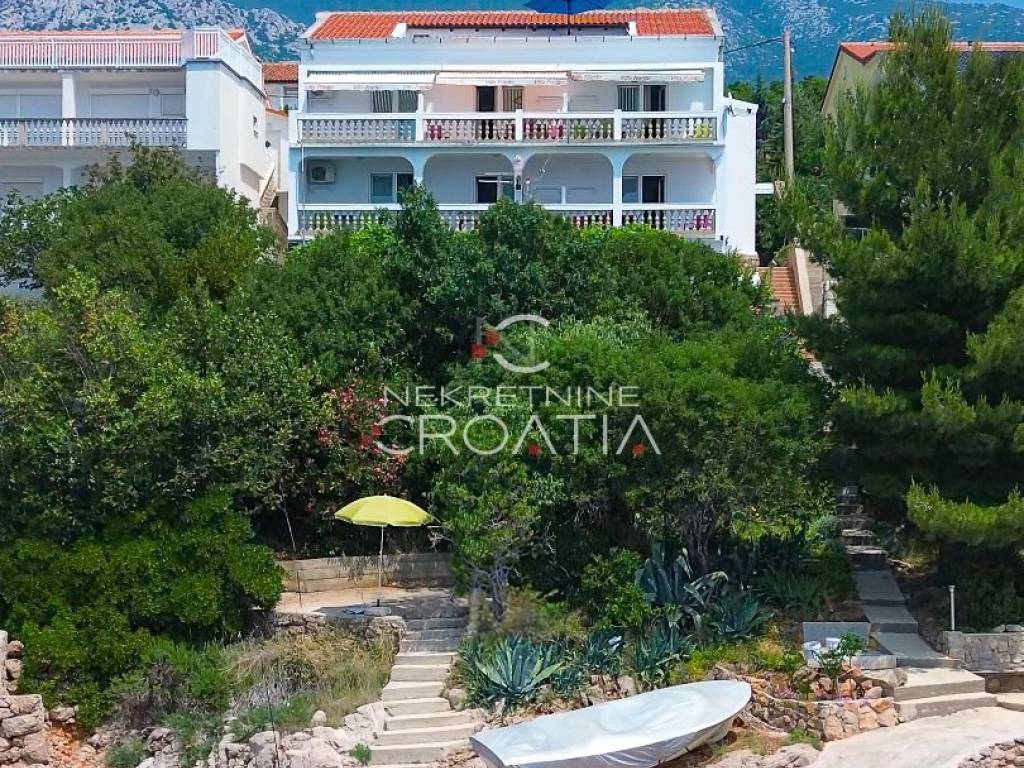 Neposredno uz more (10 m!) i odvojenu, zasebnu plažu: samostojeći višestambeni objekt ukupne površine 476 m2 sa 9 apartmana, garažom i vlastitim parkingom te jedinstvenim, panoramskim pogledom na more iz svakog apartmana i okućnice!