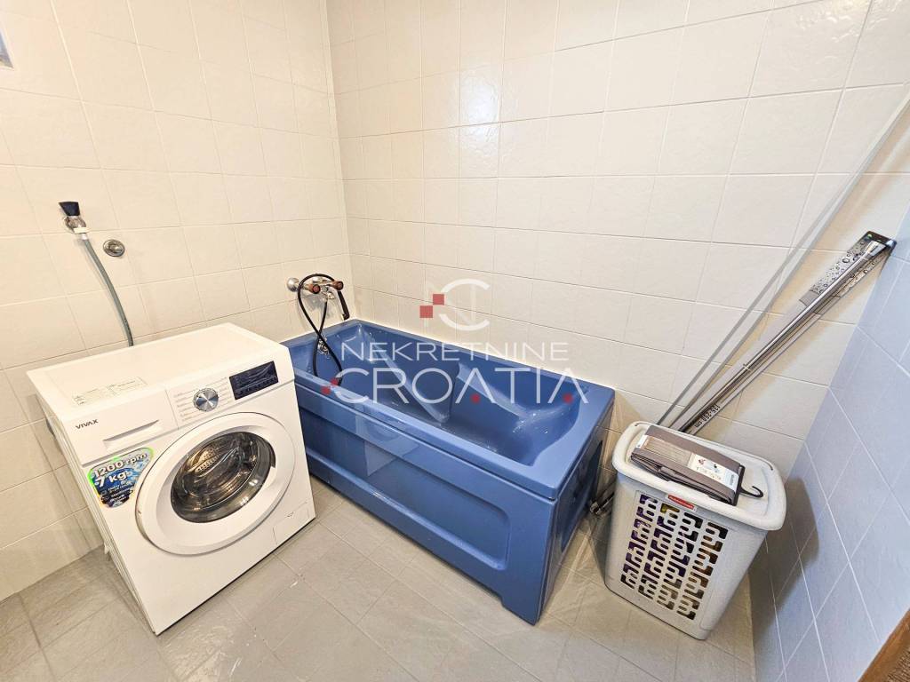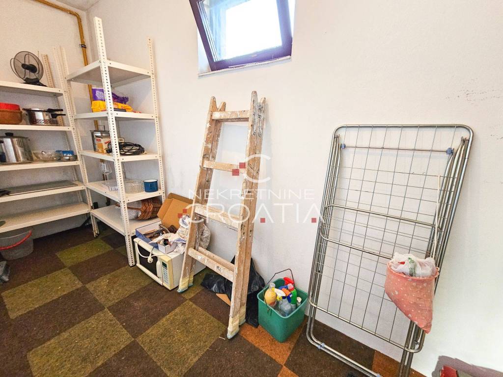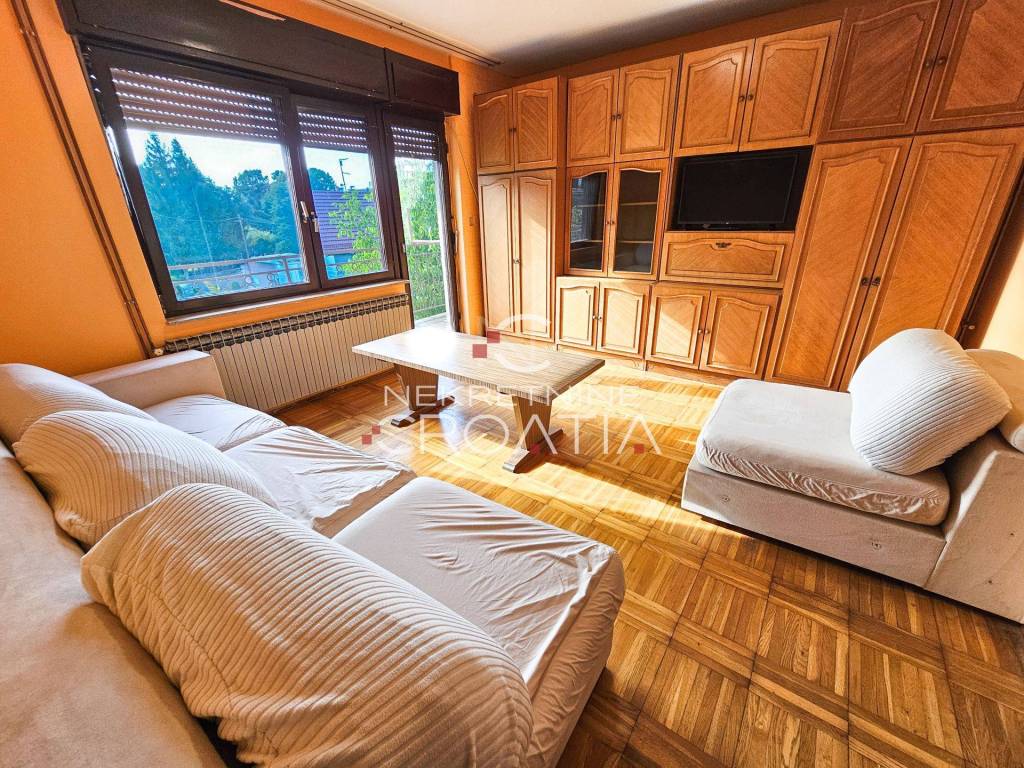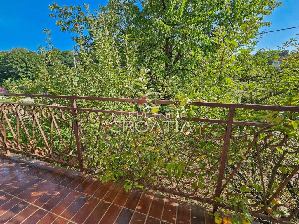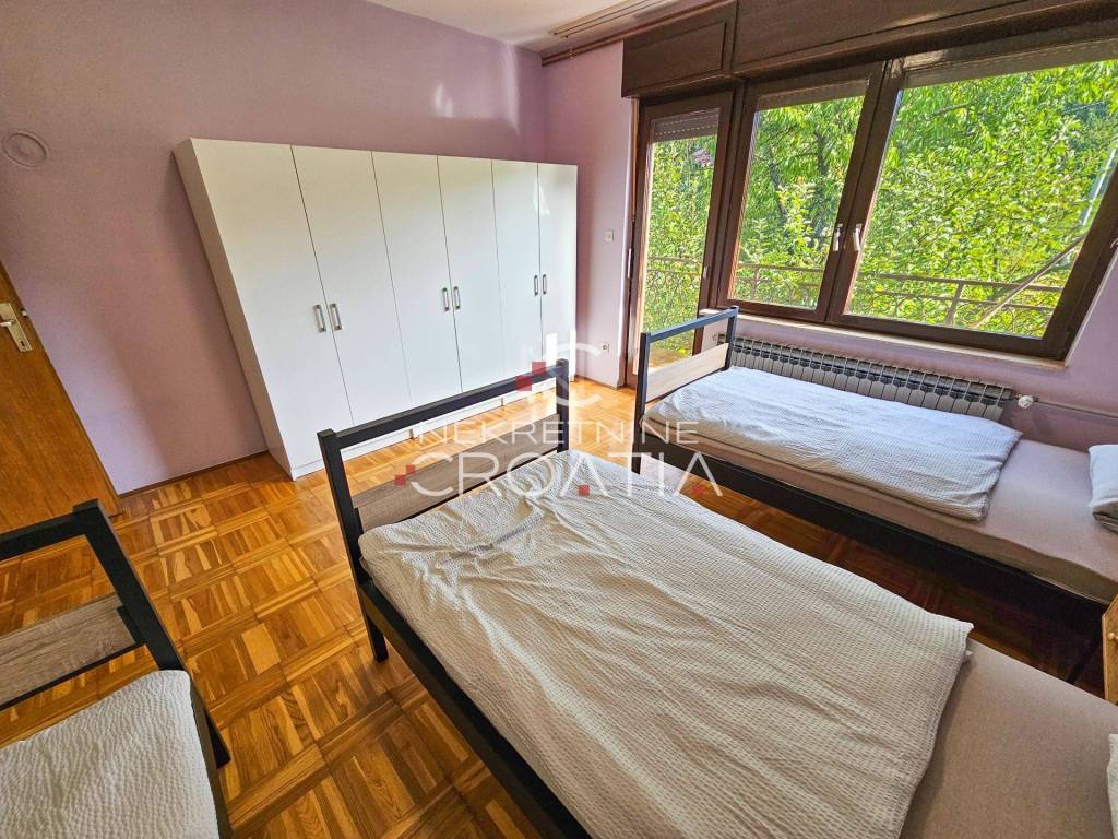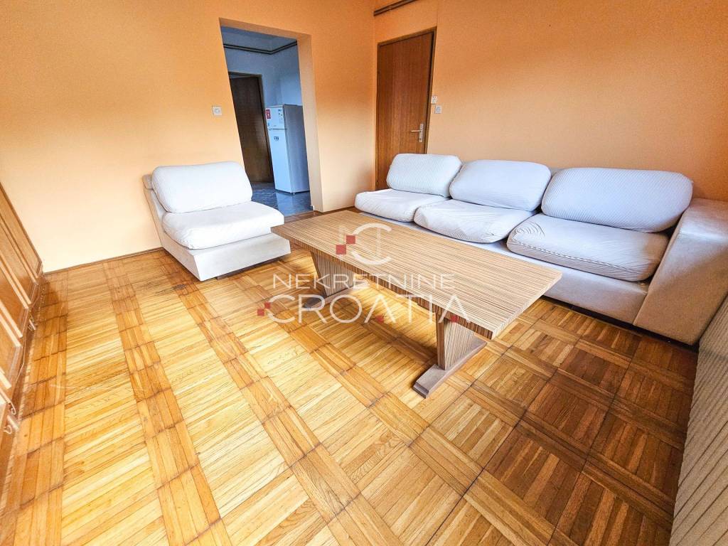 Prostrani stan na 1. katu kuće u kojoj nitko ne živi: stan je površine 100 m2 + podrumsko spremište, natkriveno parkirno mjesto i mogućnost korištenja cijele ograđene okućnice površine 1.283 m2. Iznajmljuje se dugoročno, minimalno na 1 godinu. Idealan stan za obitelj ili za smještaj više osoba/ radnika. Etažno plinsko centralno grijanje, klimatiziran. Udaljenost od Doma zdravlja 600 m, 1.9 km od osnovne škole. PROSTORIJE: - hodnik - kuhinja sa blagovaonicom - ostava - dnevni boravak - soba I (3-krevetna) - soba II (3-krevetna) - balkon I - balkon II - kupaonica sa WC-om