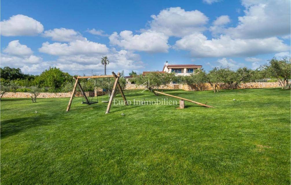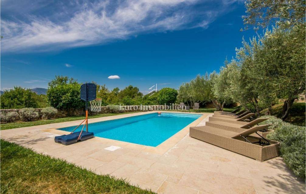 Otok Krk, okolica grada Krka. Prodaje se samostojeća mediteranska villa površine cca 154 m2, s prostranom okućnicom površine cca 700 m2. Kuća se sastoji od dvije etaže, prizemlja i kata, na kojima se nalazi prostrani dnevni boravak s kuhinjom i blagovaonom, četiri spavaće sobe, tri kupaonice, toalet te predivne terase. Kuća ima lijepo uređenu okućnicu s bazenom, sunčalištem i stablima masline.