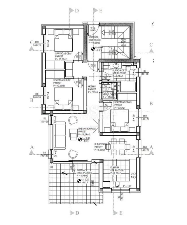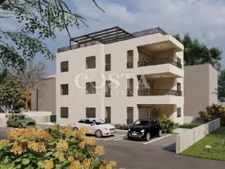 Prodaje se prostrani stan u izgradnji u blizini mora u mjestu Petrčane pokraj Zadra. Stan stambene površine 74,5 m2 nalazi se u prizemlju manje stambene zgrade s tri jedinice. Sastoji se od dnevnog boravka, kuhinje i blagovaone, tri spavaće sobe, kupaonice i dodatnog wc-a, te natkrivene terase od dodatnih 15,45 m2. Stanu pripada i vrt te dva parkirna mjesta u dvorištu zgrade pa je ukupna prodajna površina stana 105 m2.