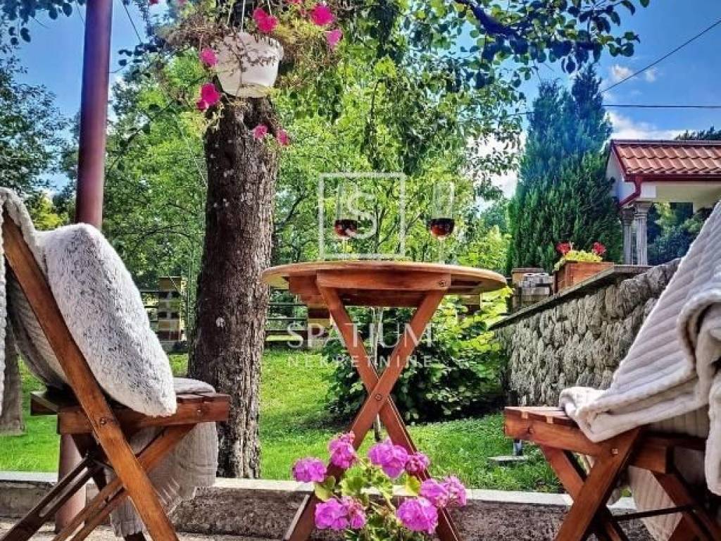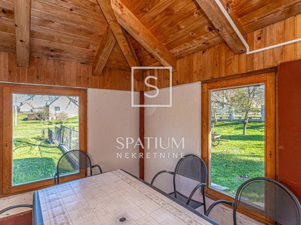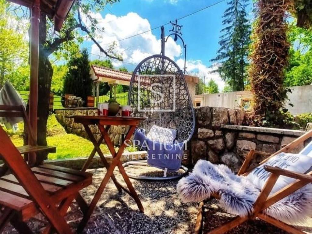 STARI LAZ, u ponudu smo dobili autohtonu kuću 101 m2 u lijepom gorskom okruženju na parceli od 6920 m2. Sastoji se od prizemlja, kata i potkrovlja. U prizemlju se nalazi kuhinja, dnevni boravak s blagovaonicom i kupaonica. Unutarnje stubište vodi na prvi kat gdje se nalaze tri spavaće sobe i kupaonica,te je u potkrovlju još jedna spavaća soba. Na okućnici se nalazi ljetna kuhinja, vanjski kamin, kućica s jacuzzijem, vanjsko spremište, garaža, te prostrani teren za razne slobodne aktivnosti. Toplina objekta osigurana je centralnim grijanjem na palete, a prodaje se opremljena i namještena. Popločani dio dvorišta osigurava dovoljno parkirnih mjesta. Uz postojeću kuć u nalazi se spremište od 11 m2, te su izvedeni betonski temelji površine 95m2 . Uz parcelu se nalazi 780m2 građevinskog zemljišta koji se također može kupiti i odvojeno. Ova nekretnina nudi veliki potencijal za razne mogućnosti, idealna je prilika za obiteljsko uživanje kao i za ulaganje u turističku djelatnost ili agroturizam.