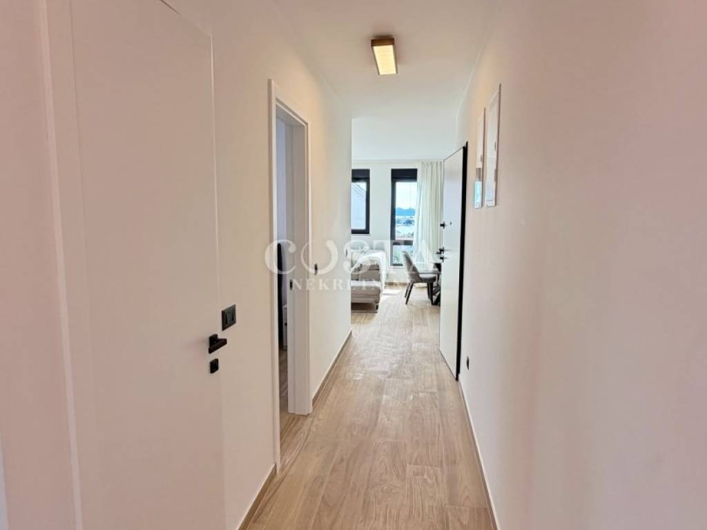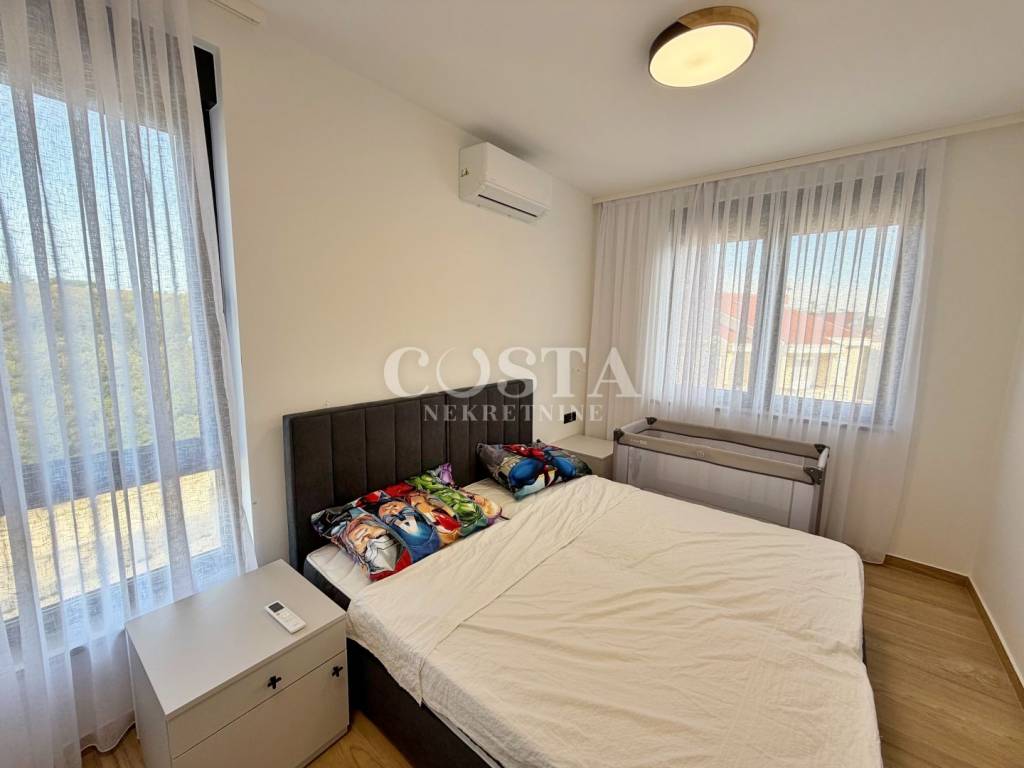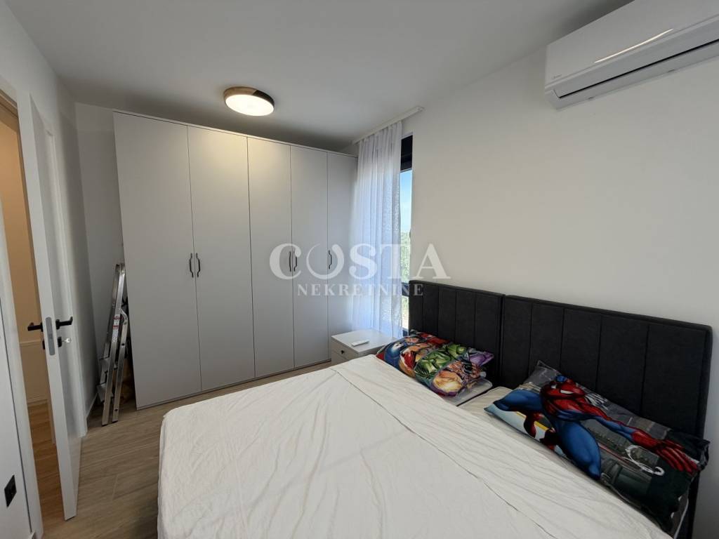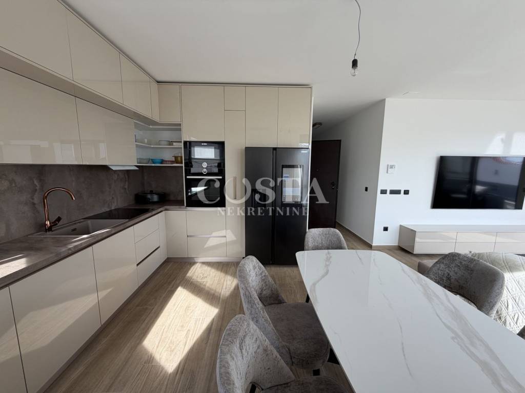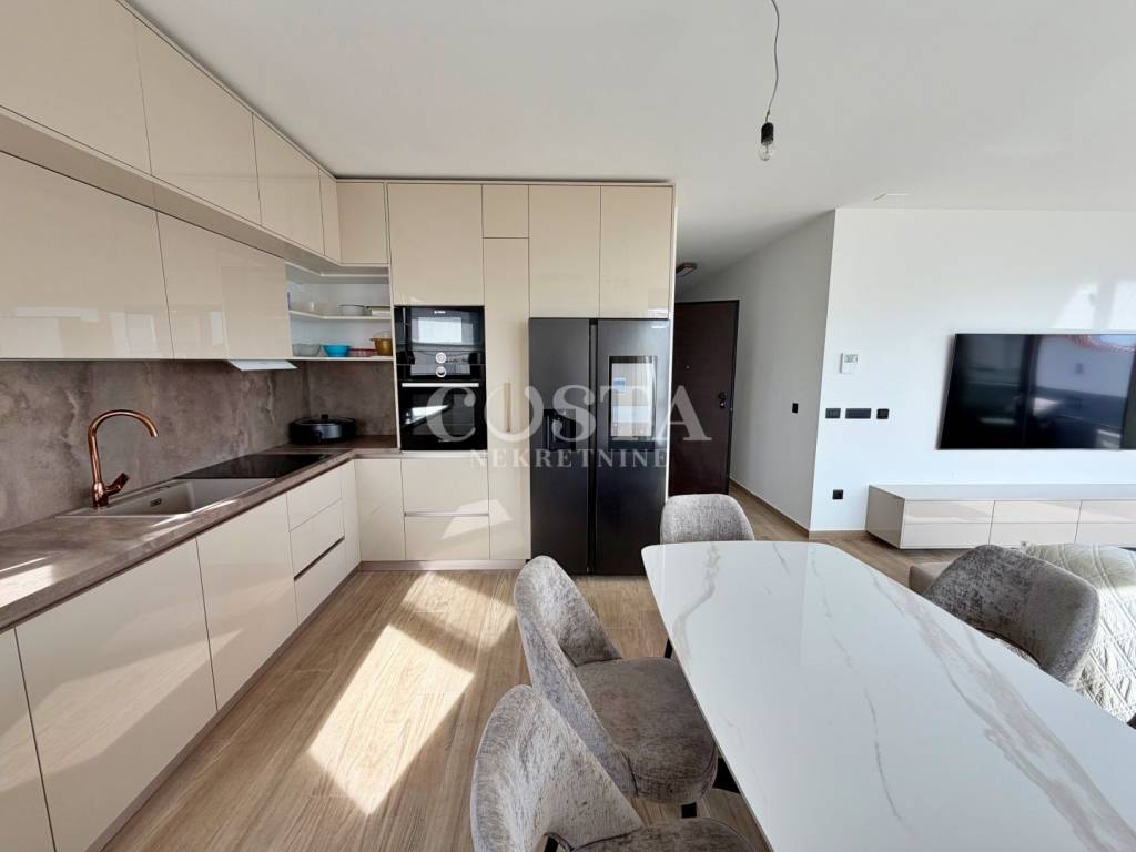 Stan je kompletno klimatiziran, te je provedeno podno grijanje u svim prostorijama. Stan je opremljen vrhunskim namještajem i bijelom tehnikom marke Bosch i Samsung. Kvalitetna PVC stolarija dolazi s elektroroletnama i komarnicima.