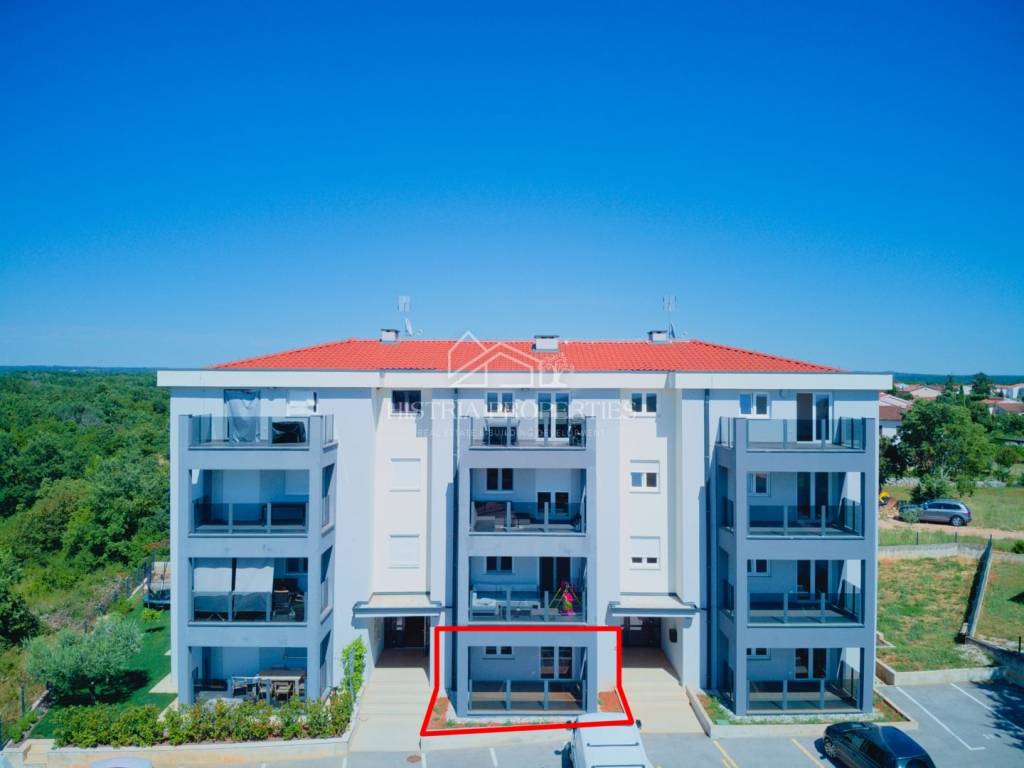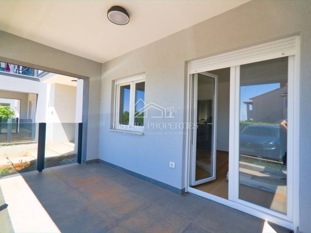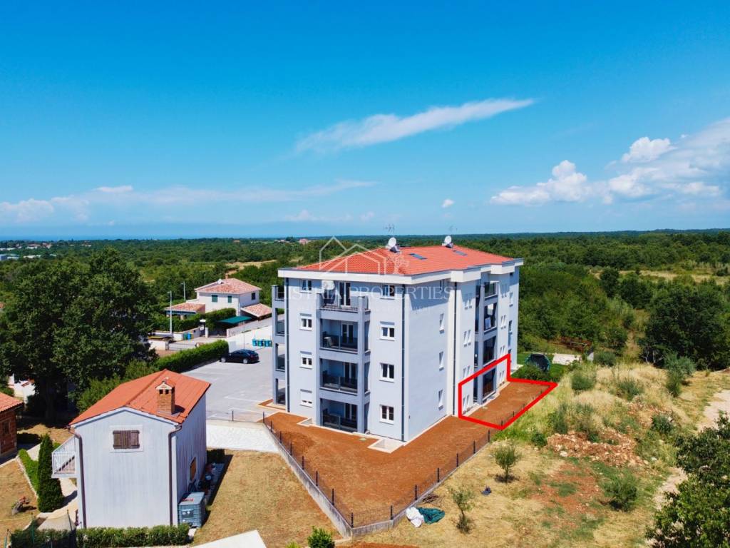 Obiteljski stan u novoj zgradi sa dvorištem 6km od Poreča