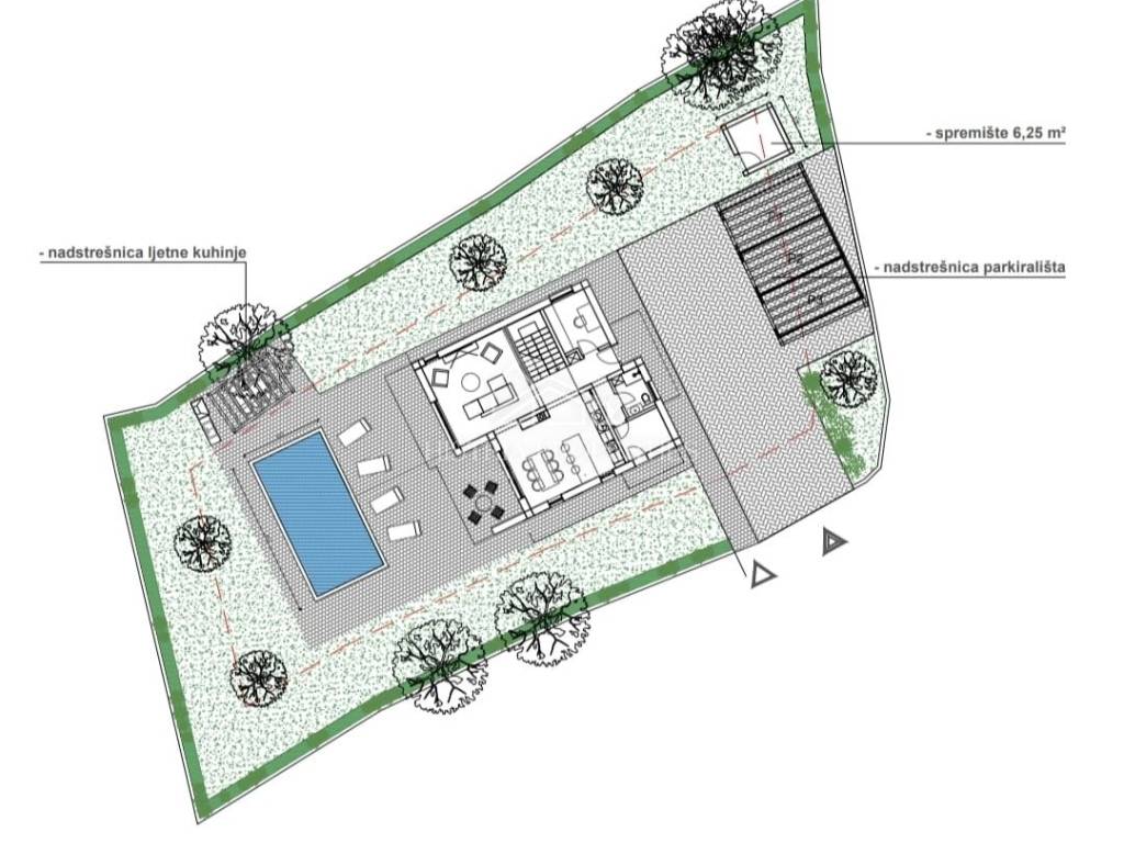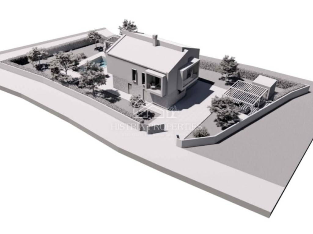 Predviđeni objekt za gradnju je modernog dizajna te uključuje veliki bazen, ljetnu kuhinju i natkriveni parking u dvorištu. Sa cjelokupnom pripremljenom papirologijom i dozvolama za sve one koji su nestrpljivi i žele čim prije započeti sa gradnjom, ovo zemljište može biti prava prilika.