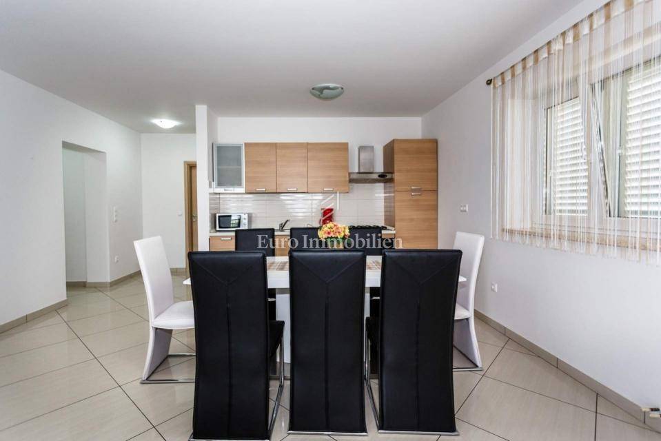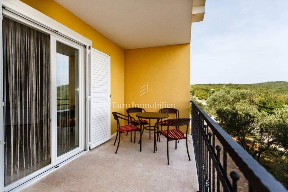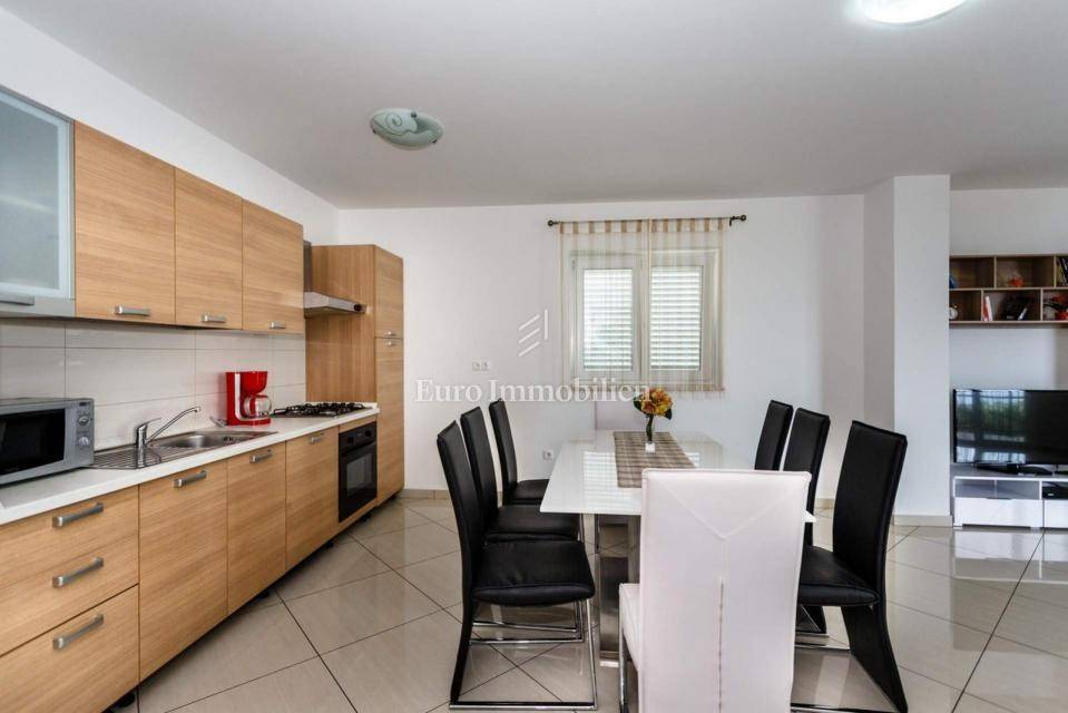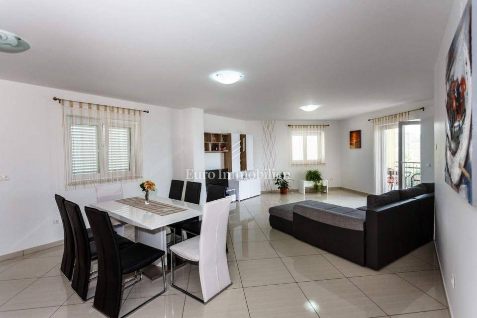 Prodaje se apartman površine 98,55 m2 na prvom katu lijepe apartmanske zgrade. Apartman se sastoji od prostranog dnevnog boravka s kuhinjom i blagovaonom, dvije spavaće sobe, hodnika, kupaone i dva balkona.