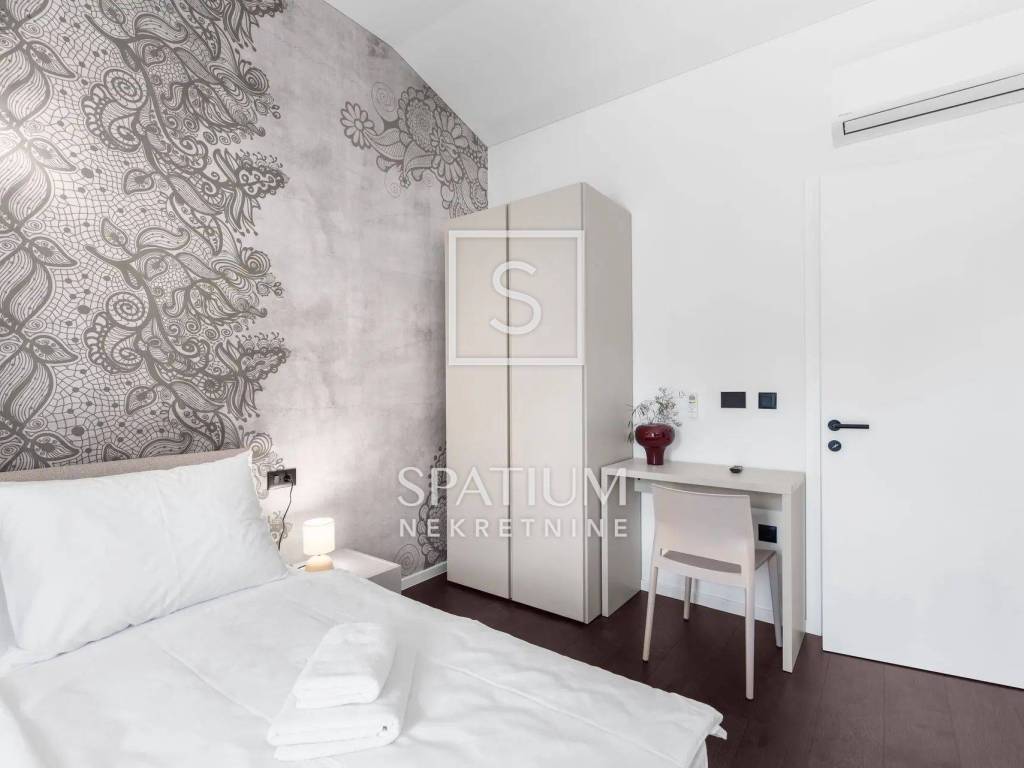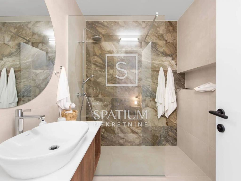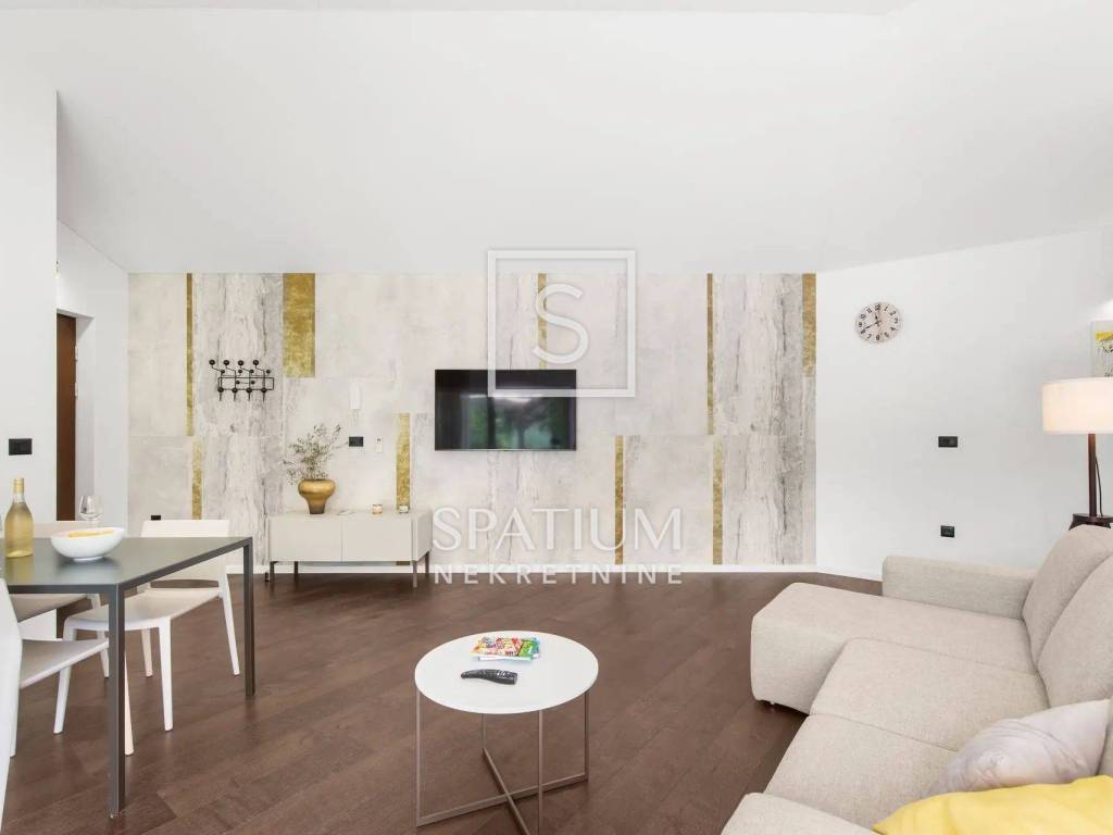 Nekretnina se prodaje potpuno opremljena i namještena visokokvalitetnim talijanskim namještajem, uključujući i vinsku vitrinu – spremna za useljenje bez dodatnih ulaganja.