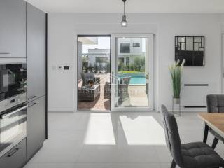 U prizemlju imamo veliki dnevni prostor sačinjen od dnevnog boravka, kuhinje i blagovaone, bogato osvijetljenim prirodnim svijetlom koji je povezan sa bazenom, sunčalištem i natkrivenom ljetnom kuhinjom. Na ovoj etaži se nalazi jedna spavaća soba sa vlastitom kupaonicom te izlazom na bazen, ostava i tehnička prostorija sa vanjske strane kuće koja omogućuje praktično održavanje bazena.