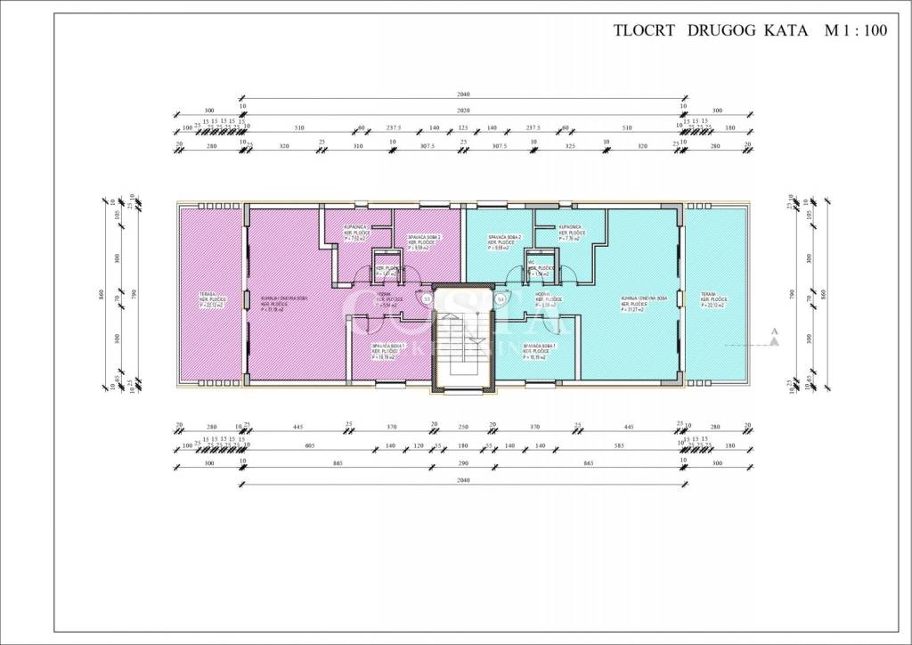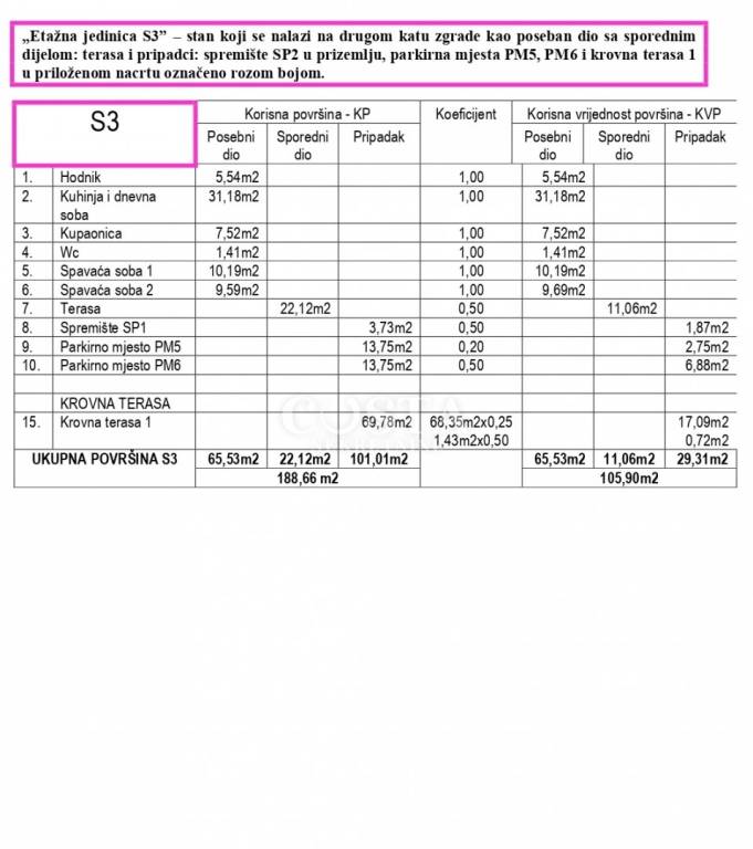 Prodaje se penthouse u izgradnji u mjestu Petrčane u okolici Zadra. Stan stambene površine 65,53 m2 nalazi se na drugom katu manje stambene zgrade od 4 jedinice. Sastoji se od dnevnog boravka, kuhinje i blagovaone, dvije spavaće sobe, kupaonice i dodatnog wc, te terase od dodatnih 22 m2. Stanu pripada i krovna terasa od 69,78 m2 s koje se pruža pogled na more, spremište te dva privatna parkirna mjesta. Sveukupna korisna površina stana zajedno sa svim pripacima iznosi 188,66 m2 (K.V. 105,90 m2).
