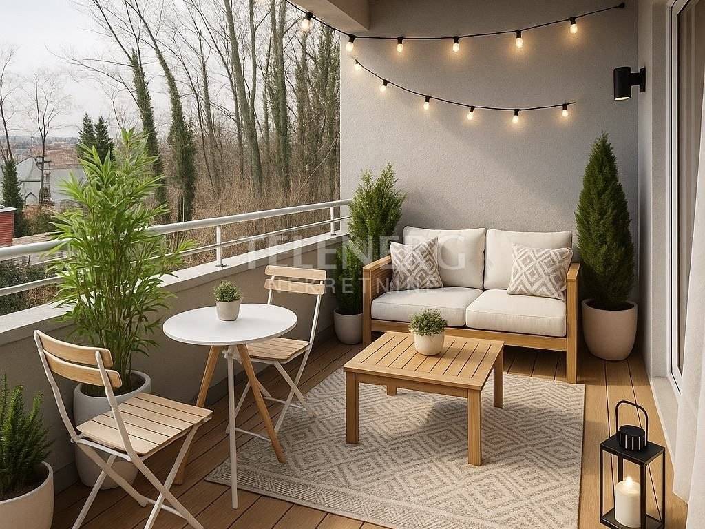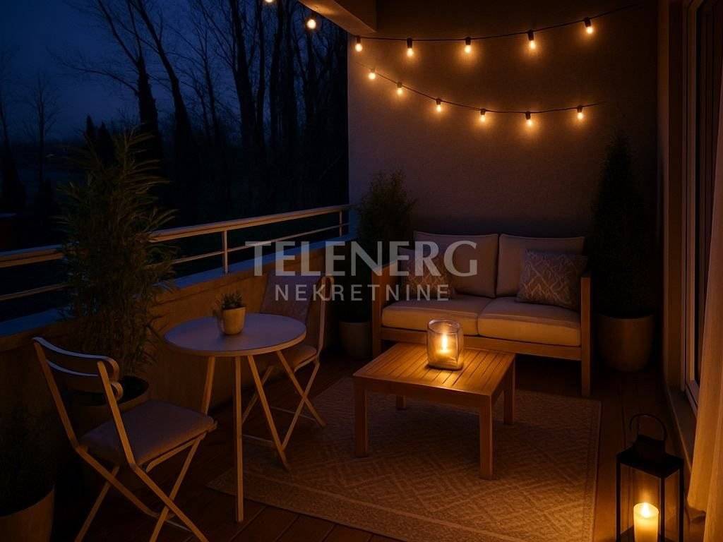 Dnevni boravak ima veliku balkonsku stijenu za izlaz na veliku terasu.