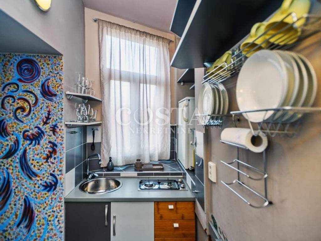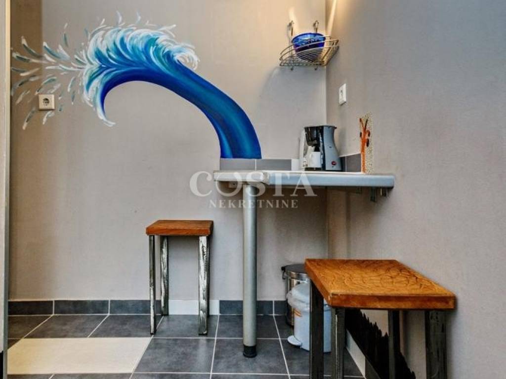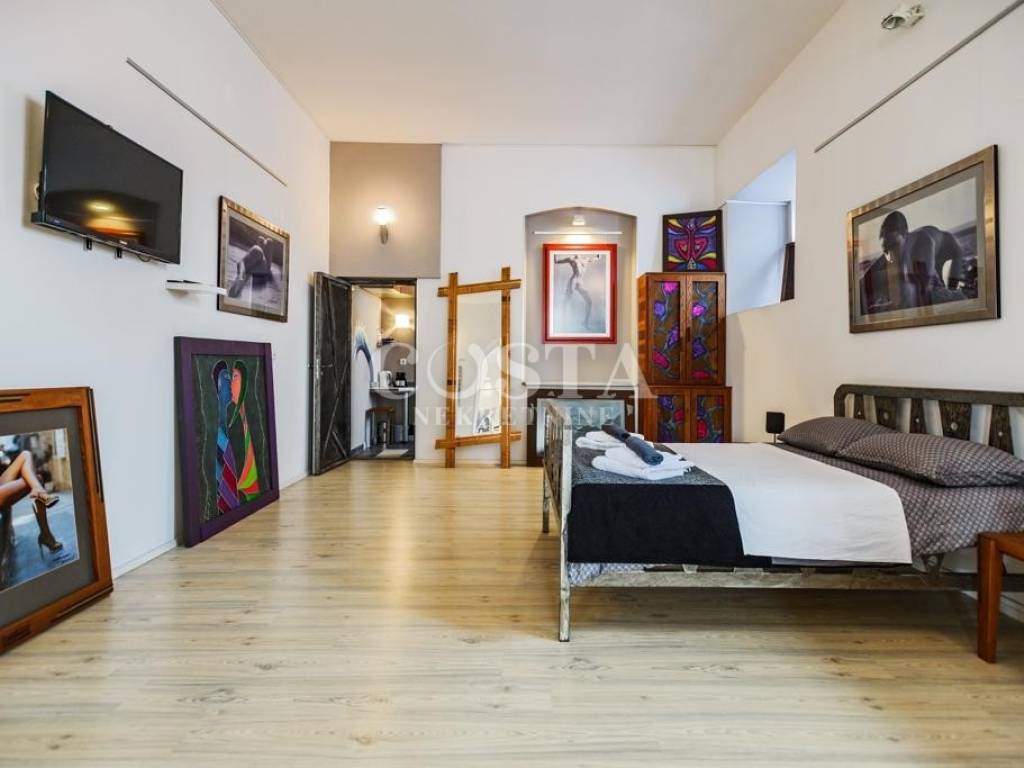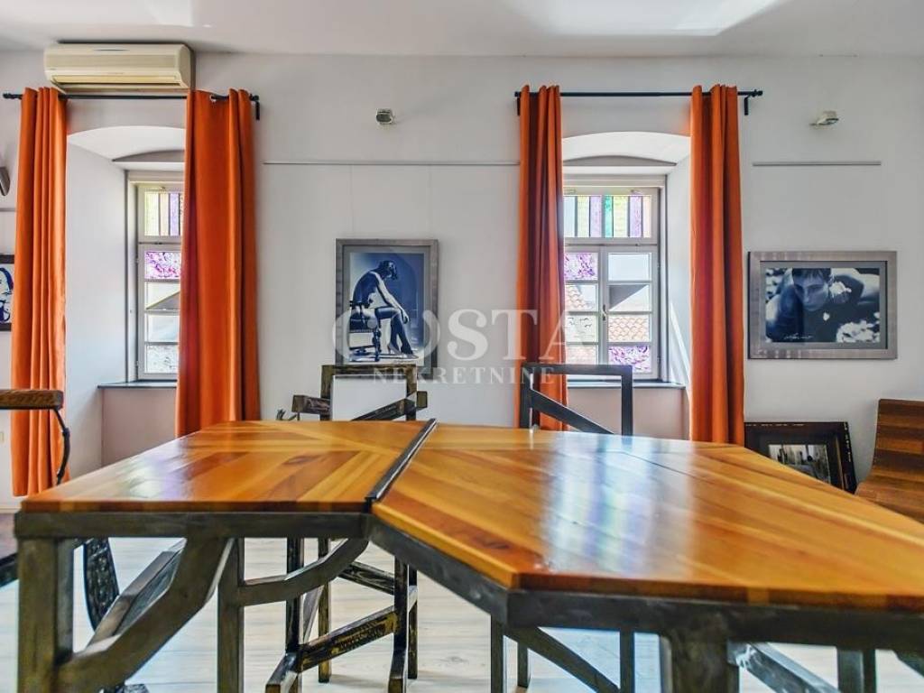 Prodaje se prostrani stan u centru grada Zadra. Stan površine 75,24 m2 u naravi ima 86 m2, te se nalazi na drugom katu zgrade u povijesnoj jezgri grada Zadra. Stan je koncipiran kao open space galerijski prostor, a sastoji se od hodnika i velike prostorije (mogu biti dvije spavaće sobe), prolaza koji vodi do kuhinje i blagovaone, još jedne spavaće sobe i kupaonice. Stan je klimatiziran te je renoviran 2013. godine kada je postavljena nova stolarija, podne obloge te namještaj.