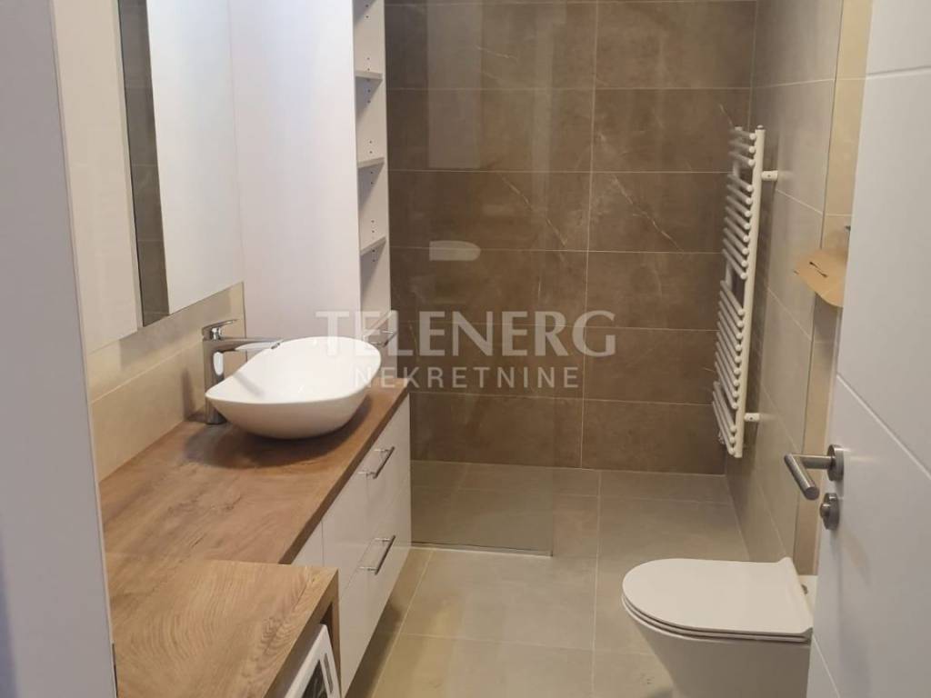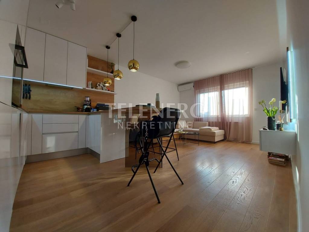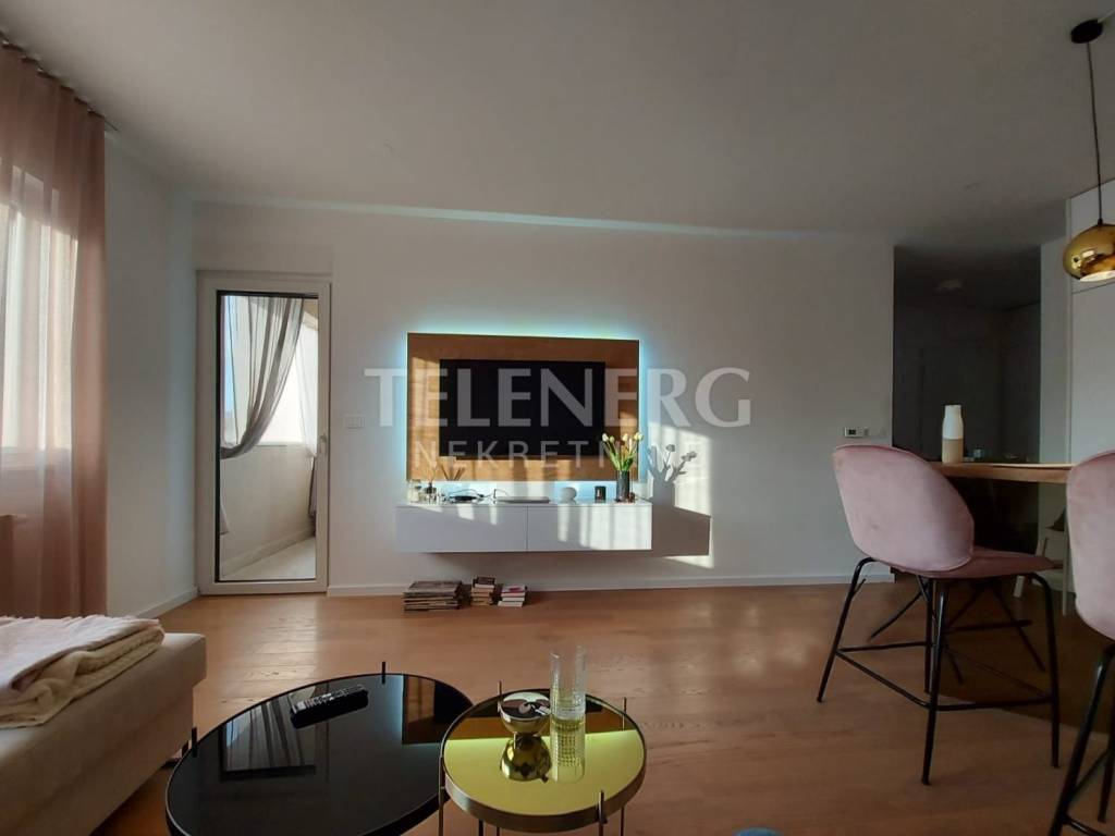 Iznajmljuje se dvosoban moderan stan u novogradnji površine 62 m², smješten na 5. katu zgrade, s uključenim garažnim parkirnim mjestom na -1 etaži odmah pored lifta.