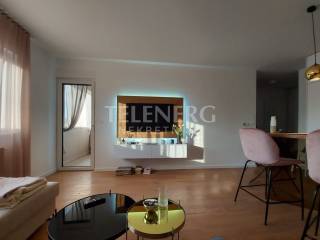 Stan je uređen za osobno stanovanje. Izvorno trosoban, manja soba prenamijenjena je u garderobu koja je kliznim vratima od kaljenog stakla povezana sa spavaćom sobom. Opremljen je namještajem po mjeri s dizajnerskim detaljima i kvalitetnim ugradbenim Gorenje aparatima (hladnjak sa zamrzivačem, pećnica, indukcijska ploča za kuhanje, perilica posuđa, perilica sa sušilicom).
