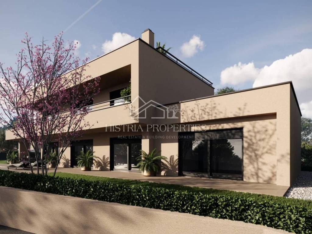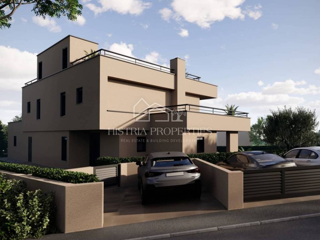 U mjestu sa svim sadržajima dobro povezanom, smjestila se ova kvalitetna i moderna vila sa bazenom, krovnom terasom, jacuzzijem i lijepim pogledom prema Poreču i moru.