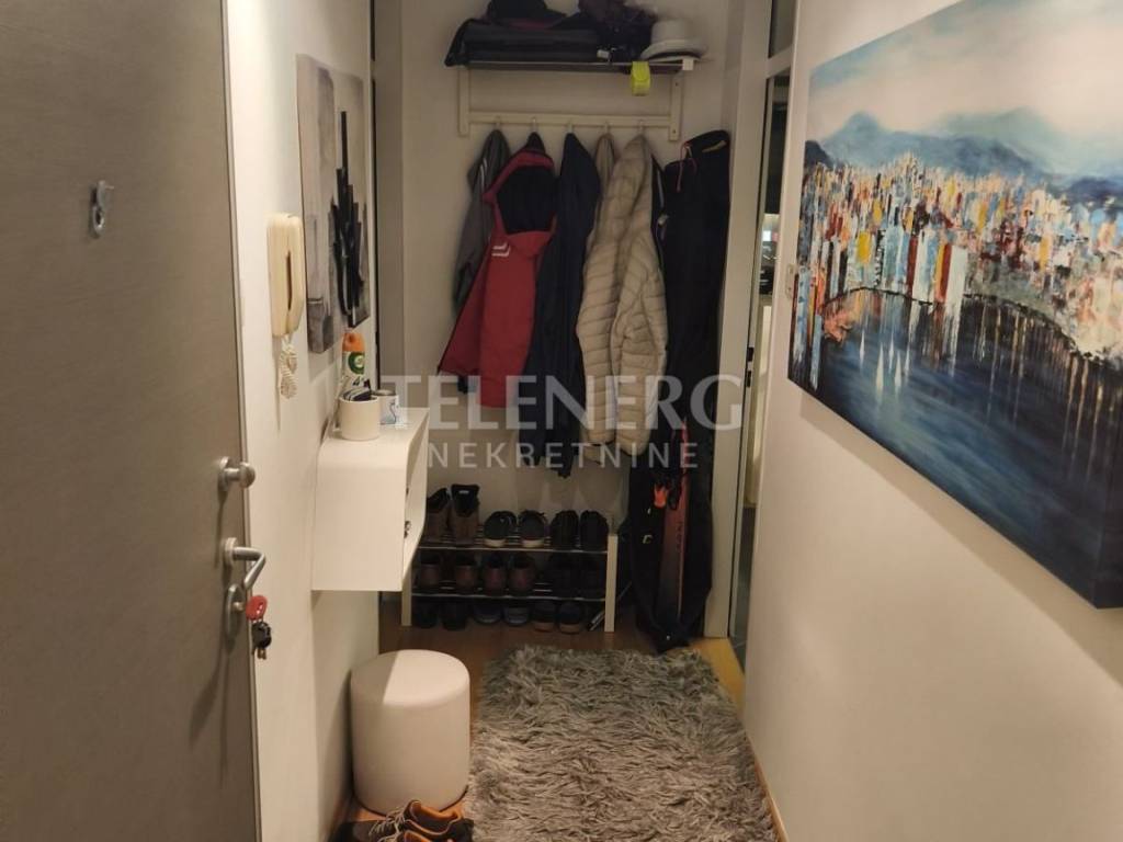 Stan se sastoji od ulaznog hodnika, dnevnog boravka s izlazom na lođu, kuhinje s blagovaonicom, kupaonice s tuš kabinom, te jedne spavaće sobe.