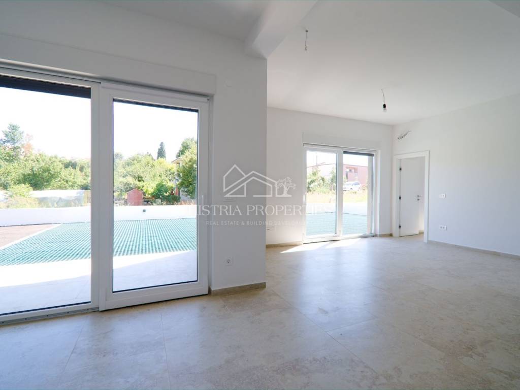 Stan ima vlastiti zaseban ulaz, odvojen od ostatka zgrada, što omogućava budućem vlasniku dodatnu privatnost i veći komoditet korištenja stana. Sam stan sastoji se od ulaznog hodnika, otvorenog dnevnog dijela sa kuhinjom i blagovaonicom koji su povezani sa terasom i vrtom. U stanu se nalaze još 2 spavaće sobe od kojih glavna soba ima vlastitu kupaonicu sa još jednom zajedničkom kupaonicom što čini ovaj stan izuzetno skladnim za obiteljske potrebe.