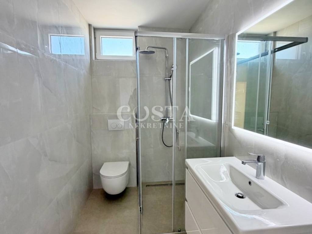 Prodaje se dvoetažni stan u novogradnji u mjestu Povljana na otoku Pagu. Stan stambene površine 74,15 m2 nalazi se na drugom katu stambene zgrade s 10 jedinica. Na drugom katu nalazi se jedna spavaća soba, kupaonica, ostava i balkon od dodatnih 14,40 m2. Na galeriji se nalazi prostrani dnevni boravak, kuhinja i blagovaona te stubište. Stanu pripada i spremište od 5,46 m2 te vanjsko parkirno mjesto. Sveukupna korisna površina stana zajedno sa svim pripacima iznosi 106,01 m2 (K.V. 85,66 m2).