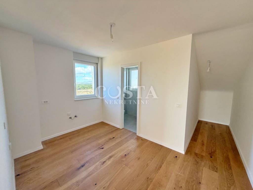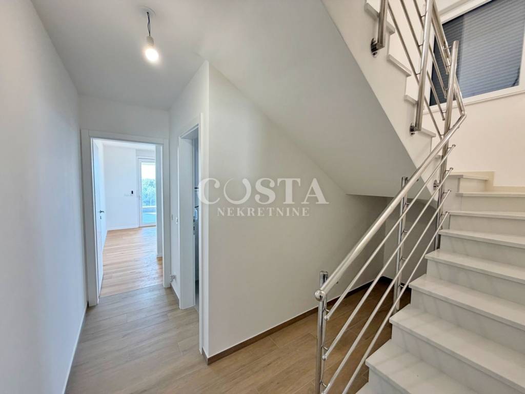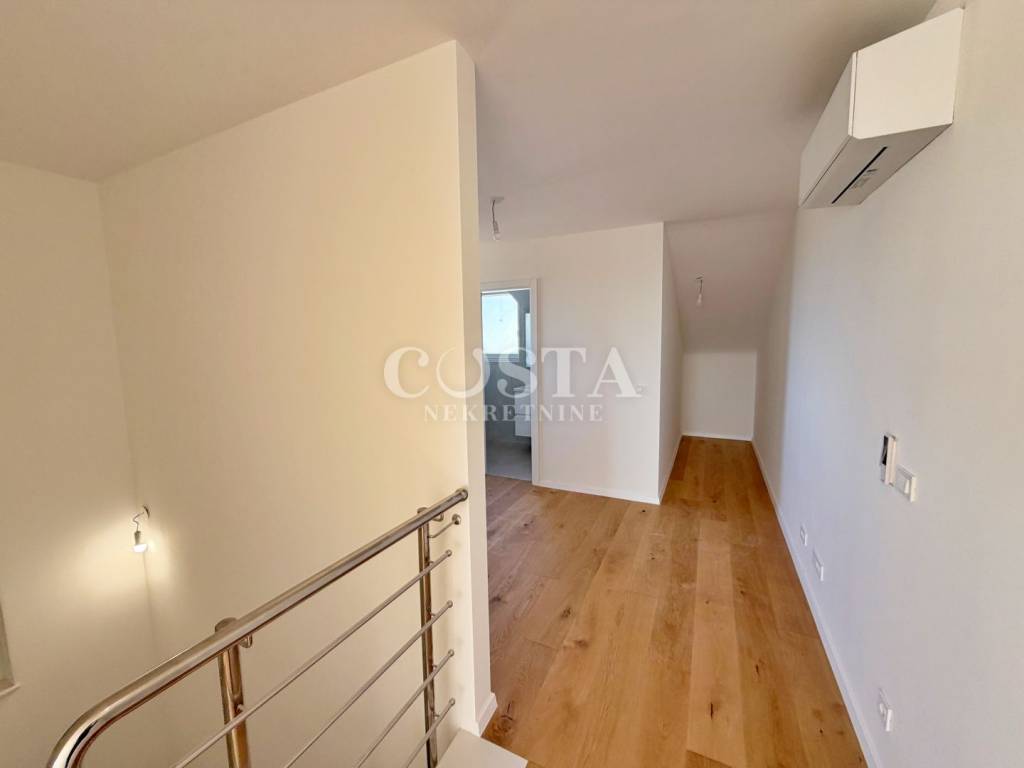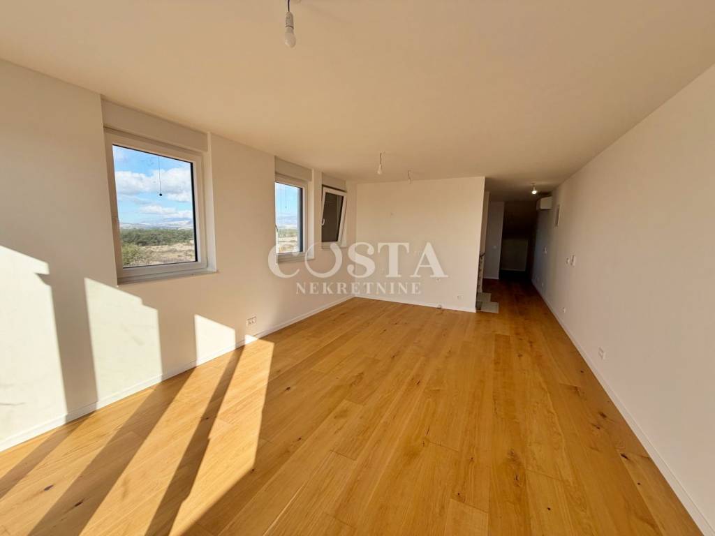 Prodaje se dvoetažni stan u novogradnji u mjestu Povljana na otoku Pagu. Stan stambene površine 103,79 m2 nalazi se na drugom katu stambene zgrade s 10 jedinica. Na drugom katu nalaze se tri spavaća soba, kupaonica, garderoba i balkoni od dodatnih 14,40 m2 i 4,20 m2. Na galeriji se nalazi prostrani dnevni boravak, kuhinja i blagovaona te stubište. Stanu pripada i spremište od 9,99 m2 te vanjsko parkirno mjesto. Sveukupna korisna površina stana iznosi 122,39 m2.