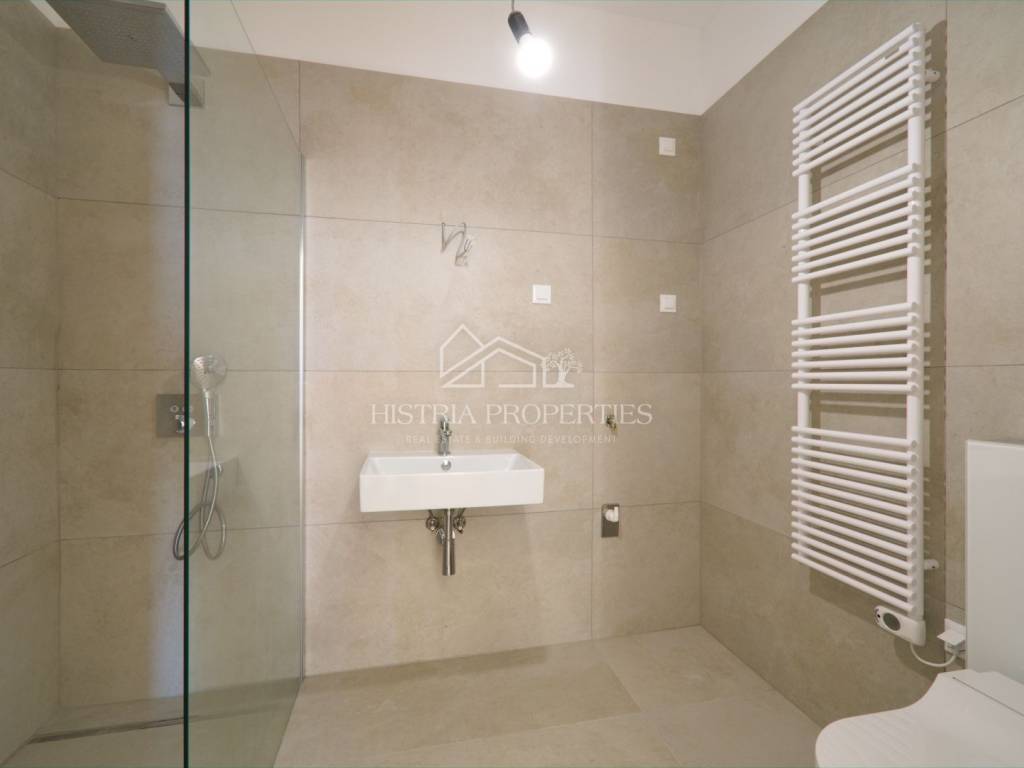 - ventilirana kamena fasada, podno grijanje na dizalicu topline za svaki stan zasebno, lift za osobe i automobile sa videonadzorom (svi zajednički prostori uključujući lift i garažu), alarmni sustav, vatrodojavni sustav, video portafon.