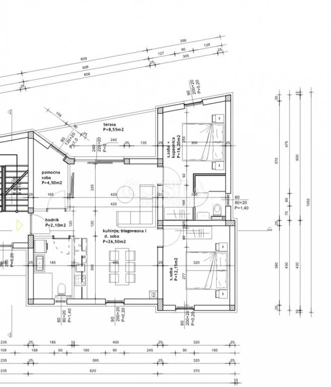 Prodaje se stan u izgradnji na vrhunskoj lokaciji na Punti u Sukošanu pokraj Zadra. Stan stambene površine 66,75 m2 nalazi se u prizemlju manje stambene zgrade sa 6 jedinica. Sastoji se od tri spavaće sobe, dvije kupaonice, dnevnog boravka, kuhinje i blagovaonice i hodnika. Stanu pripada i terasa od dodatnih 8,55 m2, prostrani vrt od 134 m2 te jedno parkirno mjesto u dvorištu zgrade. Sveukupna korisna površina stana zajedno sa pripacima iznosi 221,30 m2 (K.V. 91,70 m2).