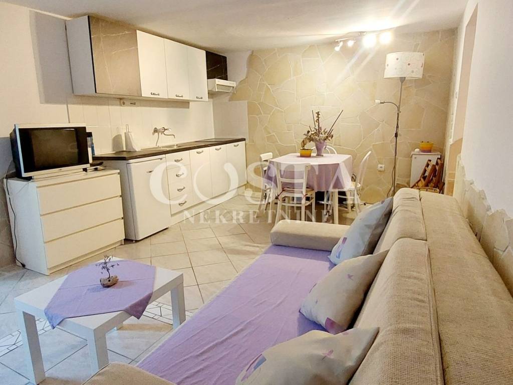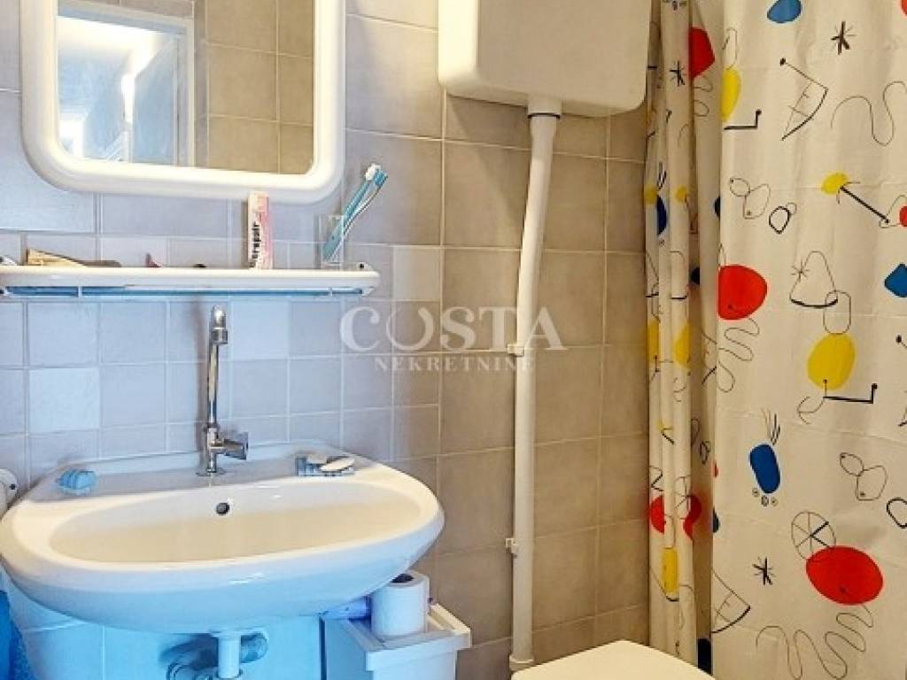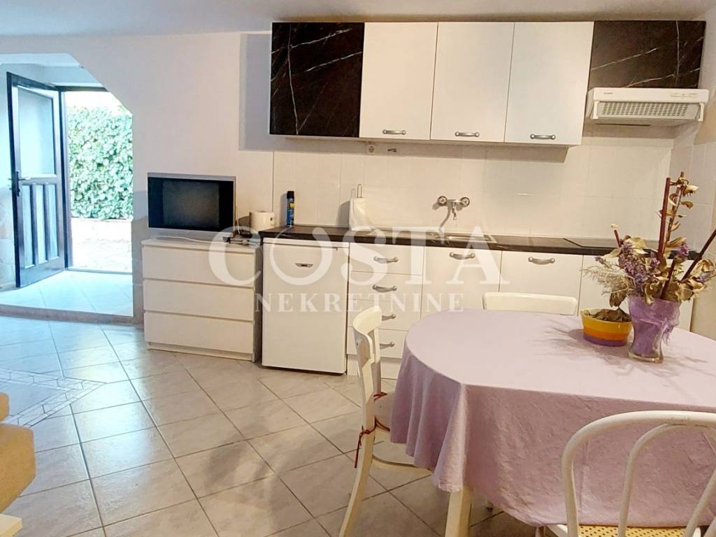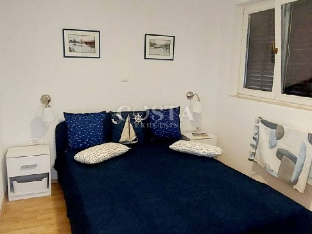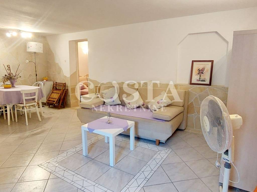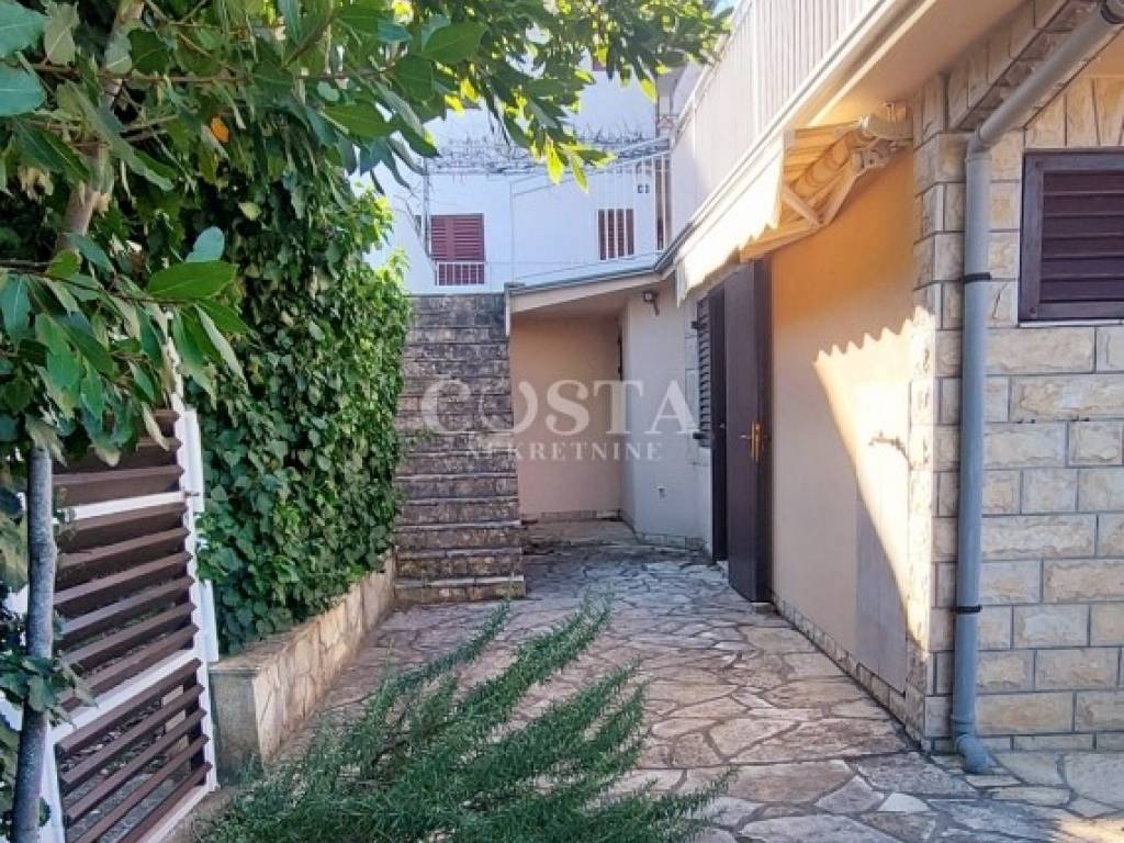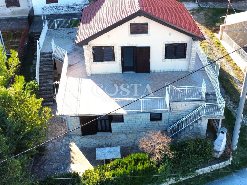 Prodaje se potpuno namještena, samostojeća kuća s tri odvojena apartmana, prostranim terasama i prekrasnim pogledom na more. Stambene površine 150 m², smještena na parceli od 214 m², nekretnina se sastoji od tri zasebno funkcionalne apartmanske jedinice koje je, prema želji budućih vlasnika, moguće povezati u jednu stambenu cjelinu. U prizemlju se nalaze dva apartmana, od kojih svaki ima dnevni boravak s kuhinjom, jednu spavaću sobu te kupaonicu s toaletom. Na katu je smješten veći apartman koji obuhvaća dnevni boravak s kuhinjom, dvije spavaće sobe te kupaonicu s toaletom. Uz kuću se prostire uređena okućnica, a nekretnini pripadaju i velike ostave, uključujući dva spremišta iza kuće te tavan s posebnim pristupom. Vanjski roštilj i prostrane terase pružaju idealan prostor za druženje i opuštanje u mirnom okruženju. Nekretnina je smještena na povišenom položaju, pri čemu se ispred nalazi samo jedna kuća, što omogućuje neometan pogled na more. Udaljena je svega nekoliko minuta hoda od obale, kao i od kafića i restorana. Nekretnina je potpuno namještena i odmah useljiva, što je čini iznimno pogodnom kako za stalno stanovanje, tako i za turističko poslovanje. Ispred objekta nalazi prostran javni parking za veći broj automobila, što predstavlja značajnu prednost na ovoj lokaciji.
