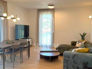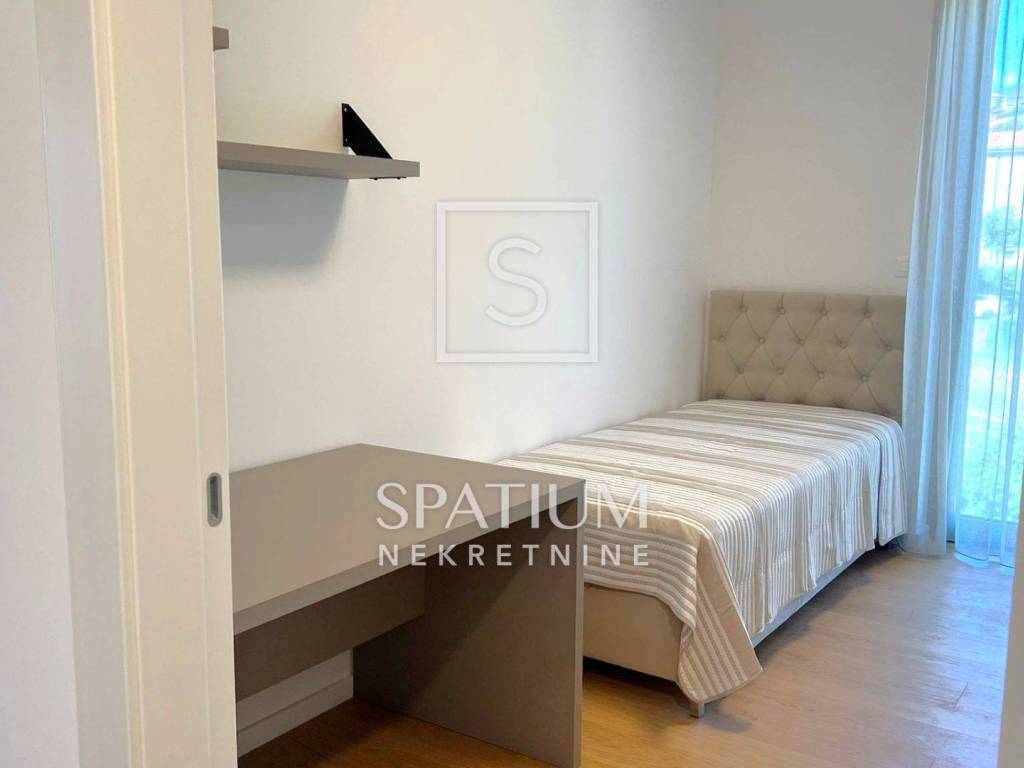 ZAMET, u ponudi za dugoročni najam ovaj je trosoban stan u novogradnji. Sastoji se od ulaznog hodnika, kupaone, toaleta, tri spavaće sobe od kojih se uz jednu nalazi garderoba te dnevnog boravka s kuhinjom i blagovaonom. Iz jedne se sobe i dnevnog dijela izlaz je na lođu s koje se pruža predivan pogled na more.