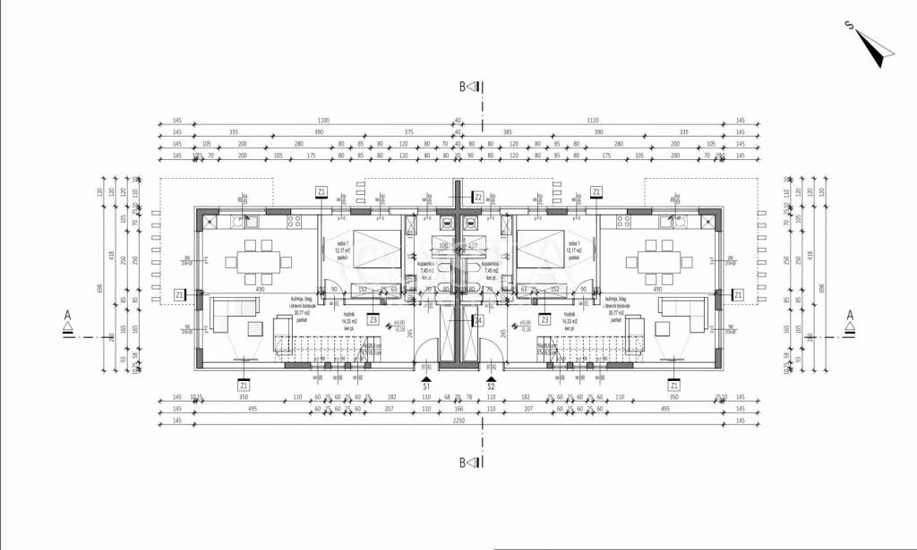 PRIVLAKA, SABUNIKE - Stan u dvojnoj vili s bazenom u izgradnji