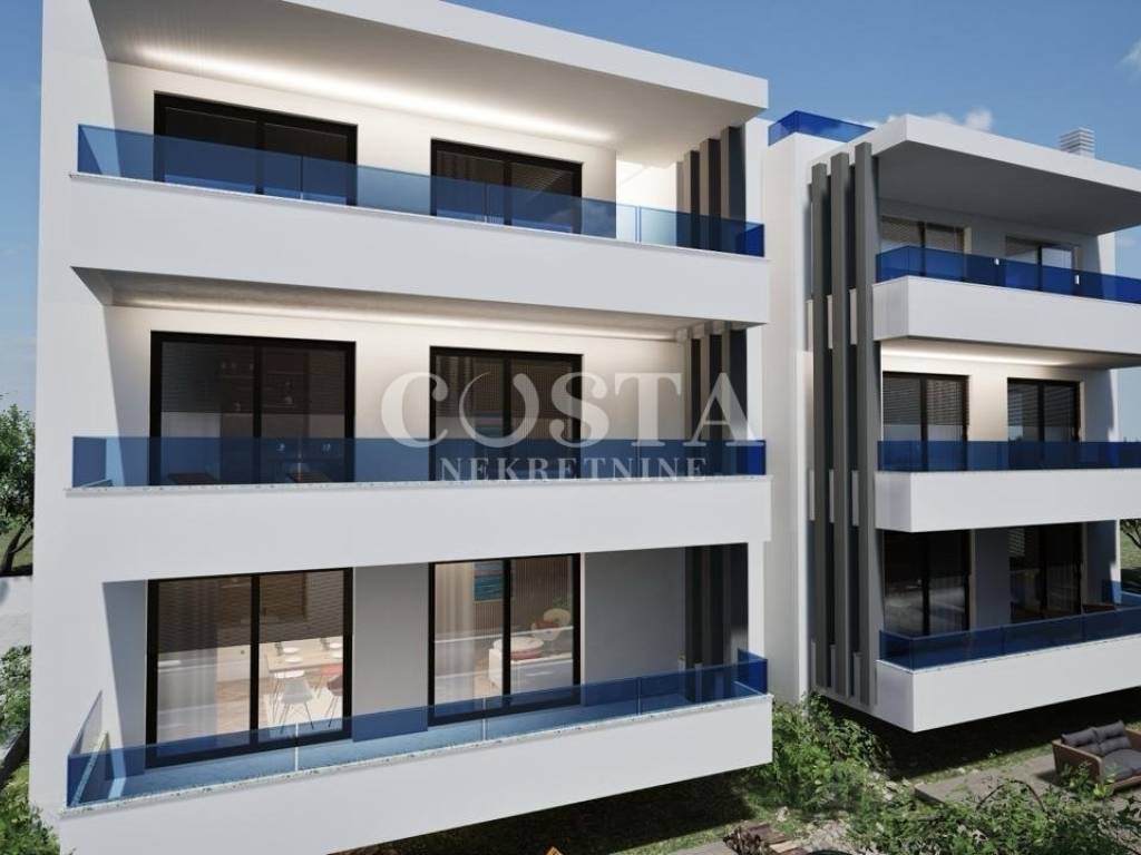 Prodaje se stan u izgradnji u mjestu Sukošan pokraj Zadra. Stan površine 61,67 m2 nalazi se na drugom katu manje stambene zgrade sa šest jedinica. Sastoji se od prostranog dnevnog boravka, kuhinje i blagovaone, dvije spavaće sobe, kupaonice, hodnika i terase od dodatnih 16,59 m2. Stanu pripada i prostrana krovna terasa s pogledom na more od 68,81 m2, te parkirno mjesto u dvorištu zgrade. Sveukupna prodajna površina stana zajedno sa svim pripacima iznosi 89,67 m2. Stan je klimatiziran, a provedeno je i podno grijanje.