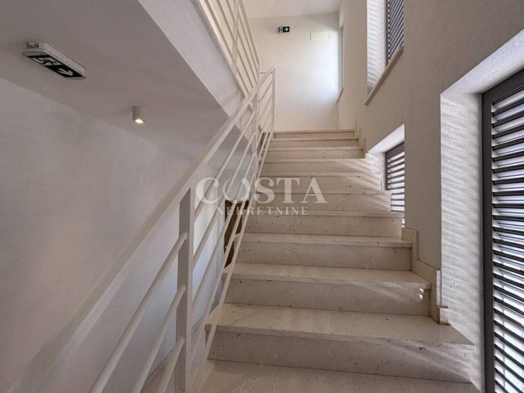 Prodaje se predivan penthouse u novogradnji na Plovaniji u Zadru. Stan površine 74,82 m2 smješten je na drugom katu stambene zgrade sa 10 jedinica. Sastoji se od tri spavaće sobe, dnevnog boravka, kuhinje i blagovaonice, dvije kupaonice i izbe, te lođe od dodatnih 23,66 m2. Stanu pripada i prostrana krovna terasa od 81 m2 s panoramskim pogledom na grad, dva vanjska parkirna mjesta i ostava u podrumu zgrade. Ukupna korisna površina stana zajedno sa svim pripacima iznosi 211,96 m2 (K.V. 121,32 m2).