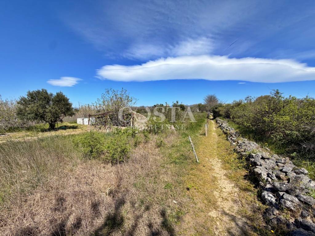 Okućnica je prostrana, s vrtom u kojem se nalaze dvije masline, a zahvaljujući veličini parcele postoji i mogućnost izgradnje bazena ili dodatnih sadržaja za boravak na otvorenom. Na parceli se nalaze i dva bunara te gusterna (cisterna) koja je priključena na kuću. Nekretnina je udaljena približno 1 km od mora i nalazi se u blizini svih potrebnih sadržaja.
