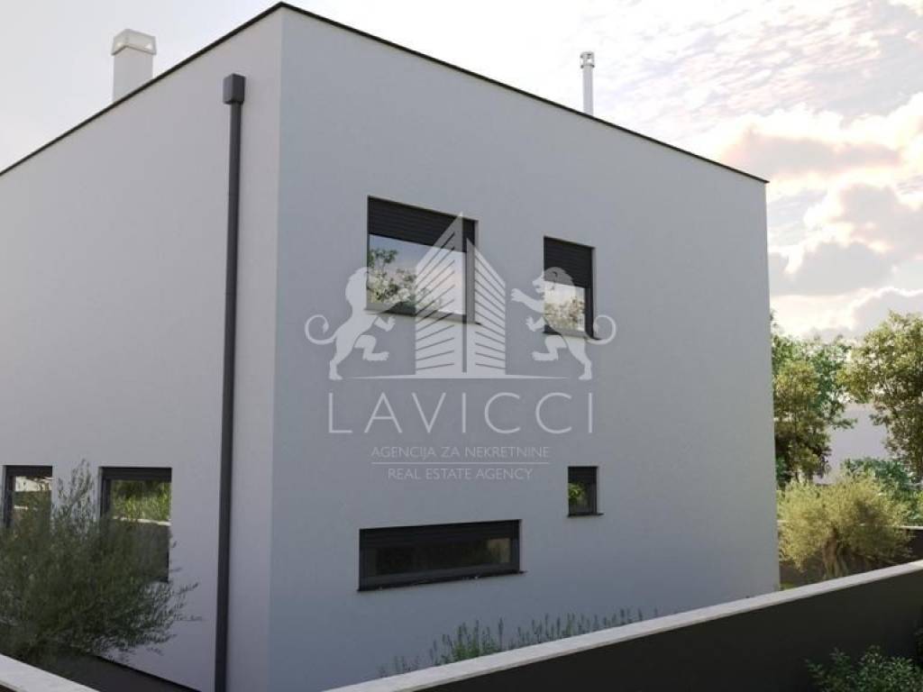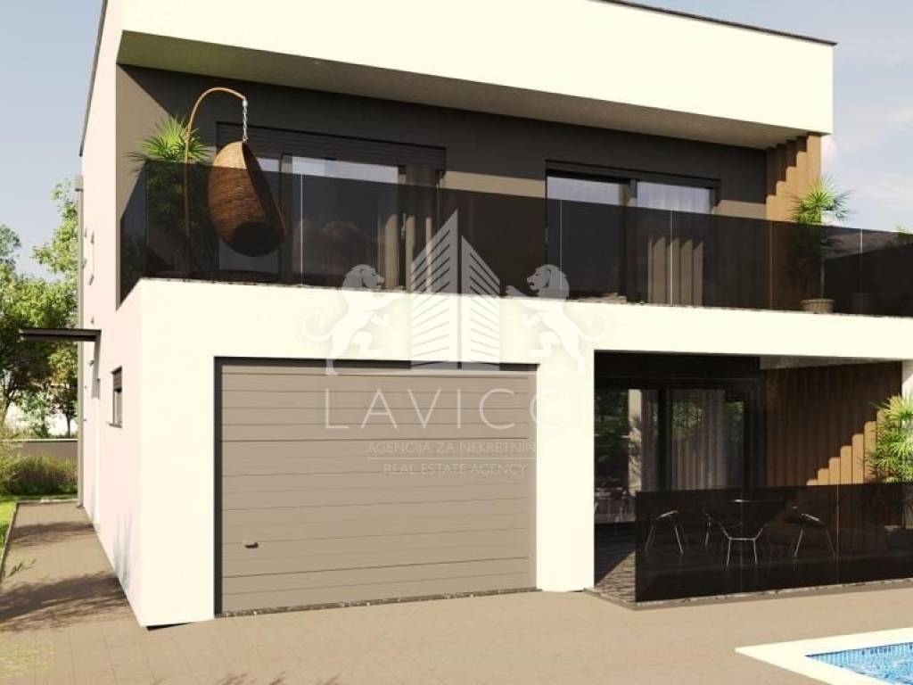 Sastoji se od prizemlja i prvog kata. Prizemlje čini ulazni dio (hodnik), garaža, stubište, kupaonica s wcom, dodatni gostinjski wc, te kuhinja s blagovaonicom i dnevnim boravkom u open space izvedbi s izlazom na natkrivenu terasu, ispred koje se nalazi grijani bazen dimenzija 3,5 x 6,5m. Na prvom katu se nalazi predsoblje, tri spavaće sobe, kupaonica s wcom, te vanjska terasa.