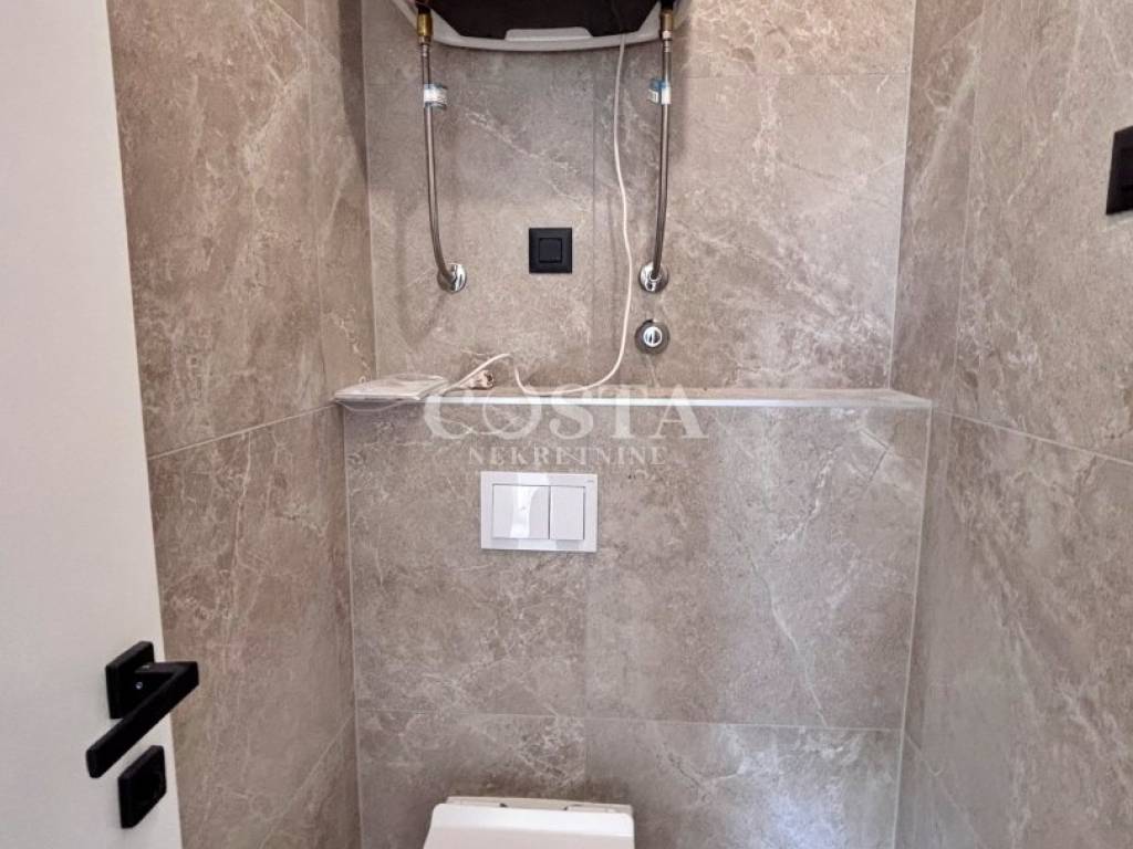 Stan je kompletno klimatiziran, a provedeno je i podno grijanje. Na fasadi je termoizolacija, a za podne obloge korištene su keramičke pločice prve klase. Stolarija je PVC s elektroroletnama i ugrađenim komarnicima.