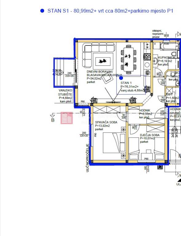 UKUPNO: 80,99 m2 + vrt cca. 80 m2.