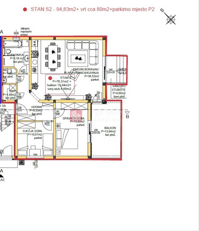 UKUPNO: 94,83 m2 + vrt cca. 80 m2.