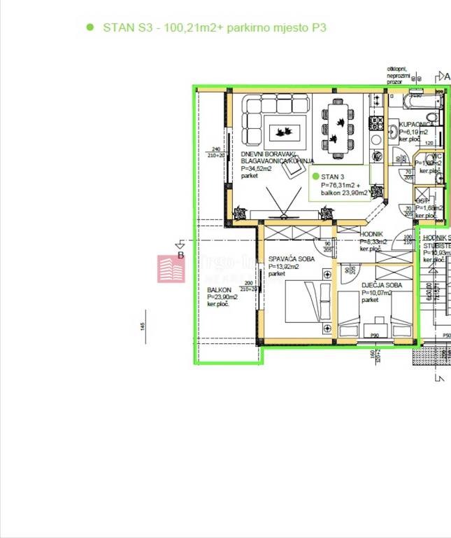 DNEVNI BORAVAK/KUH./BLAG.: 34,52 m2