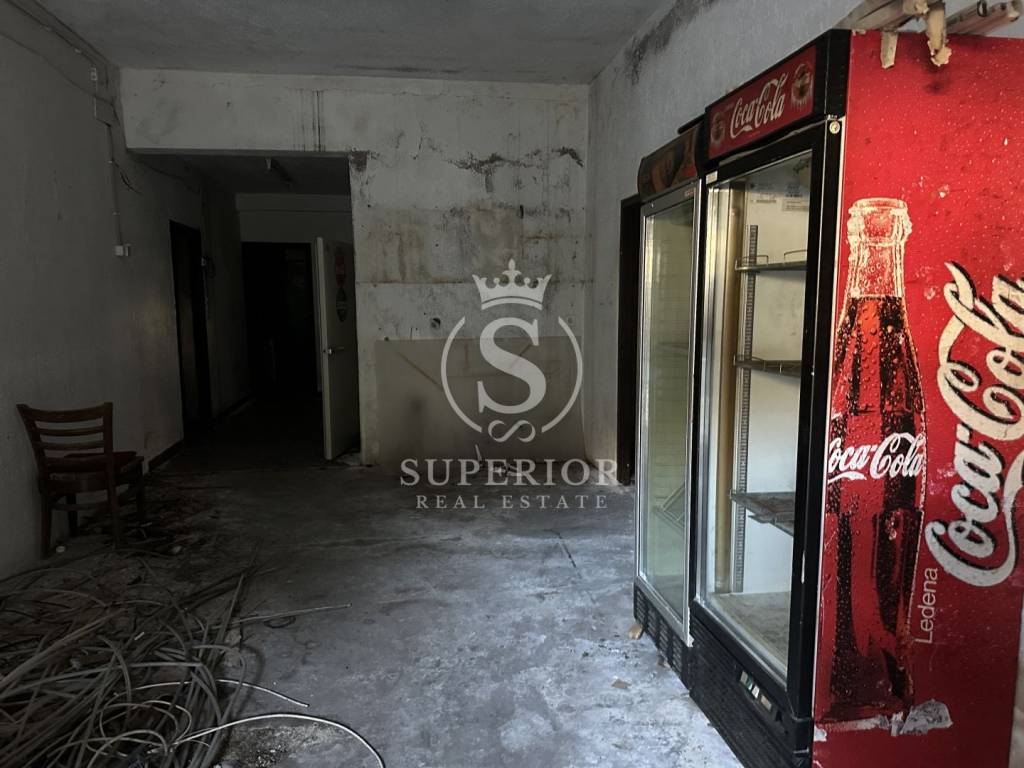 Tip: Stambeno-poslovna zgrada s ugostiteljskim objektom Površina: 440 m² izgrađenog prostora (tlocrtne dimenzije 22,10 m x 21,90 m) Građevinska dozvola: Izdana 90-ih godina Trenutno izvedeni sadržaji: Prizemlje: predviđen disko klub Kat: dva stana i apartman Iskopi za unutarnji bazen dimenzija 16 x 10 m Priključci: Struja 44 kW Kanalizacijski odvodi na 5 mjesta Status: Potrebna potpuna renovacija i dovršetak gradnje