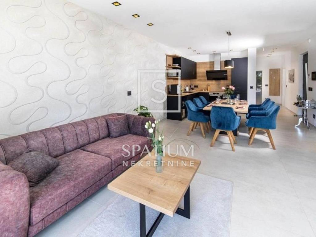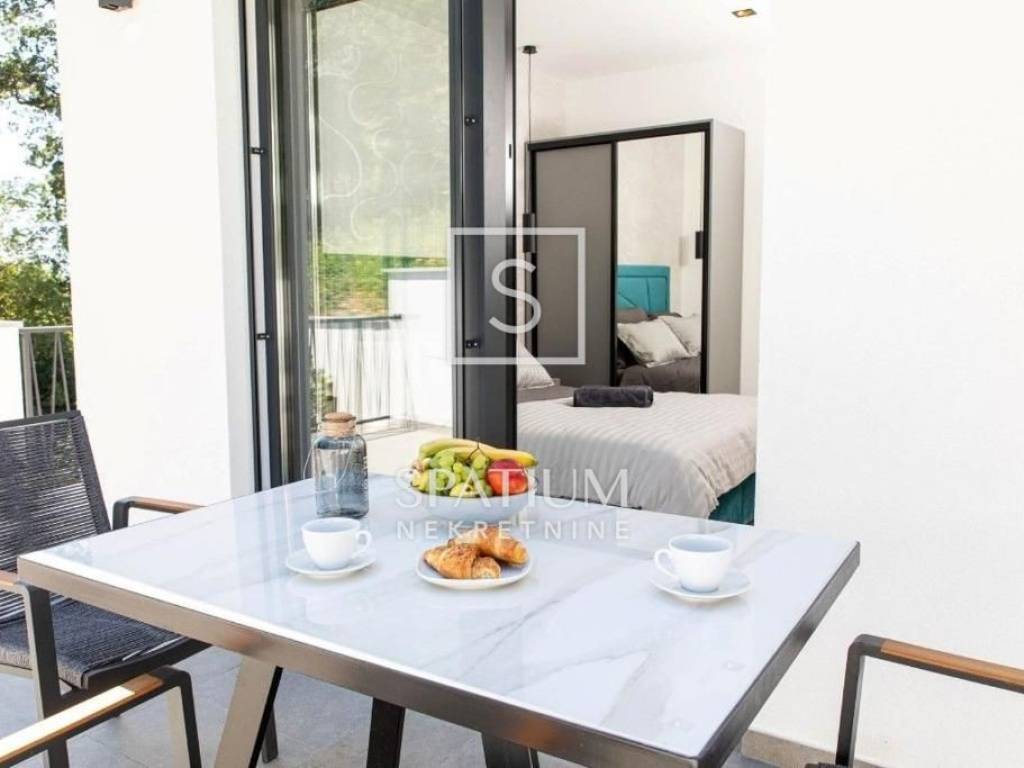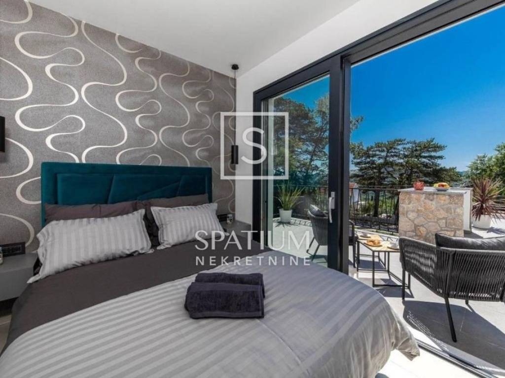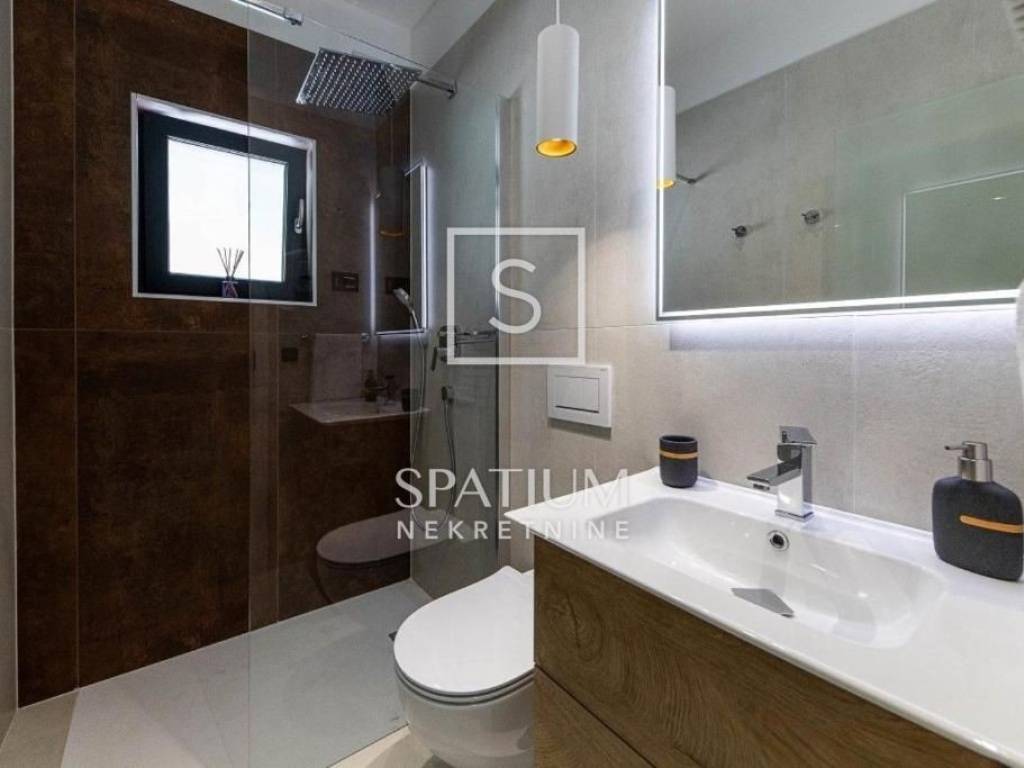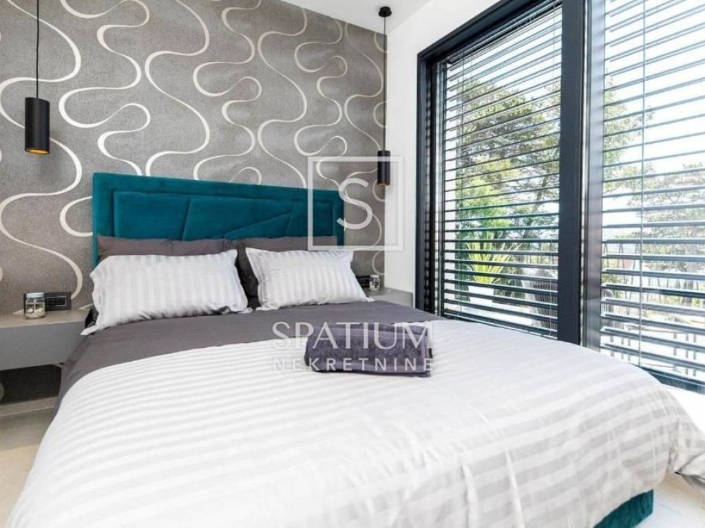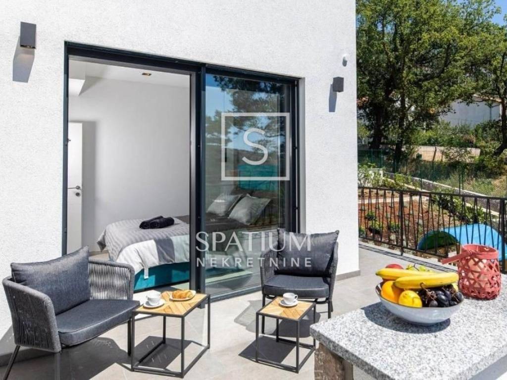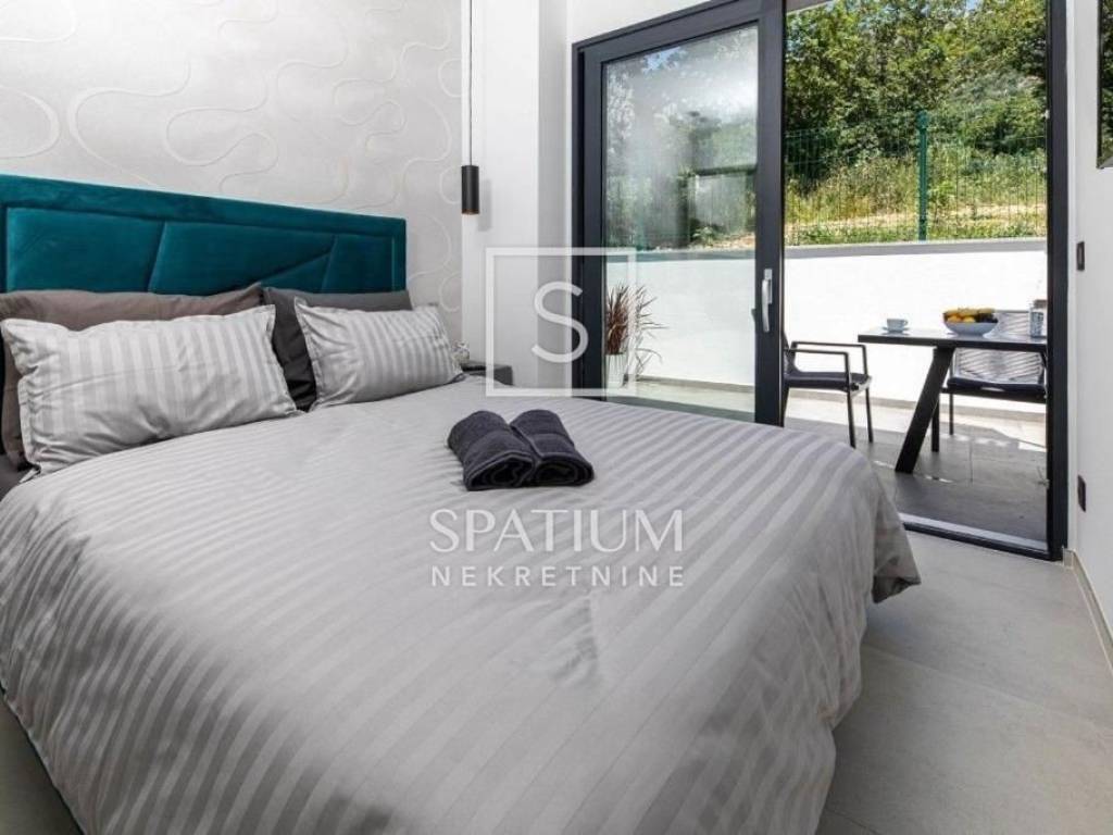 BRIBIR, u ponudu smo dobili luksuznu vilu u mirnom okruženju. Potpuno uređena i moderno namještena, površine 150 m². Smještena na ograđenoj okućnici od 715 m² s grijanim bazenom, dječjim igralištem, parkingom za četiri vozila i stanicom za električno punjenje. U prizemlju kuće su kuhinja, blagovaona i dnevni boravak otvorenog koncepta s izlazom na natkrivenu grill terasu i pogledom na vanjski grijani bazen. Spavaća soba s kupaonom i posebna prostorija sa svom potrebnom tehnikom i perilicom. Unutarnje stubište vodi na kat gdje se nalaze tri spavaće sobe, dvije kupaone, sauna, mali wellness te jacuzzi na terasi. Svaka soba ima izlaz na terasu i prekrasan pogled na okolinu. Dio okućnice čini mediteranski vrt sa sustavom navodnjavanja. Ova moderna nekretnina opremljena je dizalicama topline, podnim grijanjem, centralnim usisavačem, alarmom i video nadzorom, s mogućnošću upravljanja putem pametnog telefona. Povišena i ograđena pruža intimu u potpunosti.