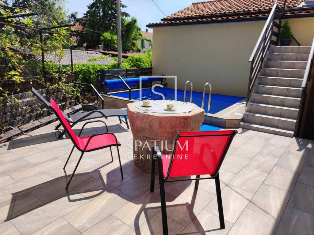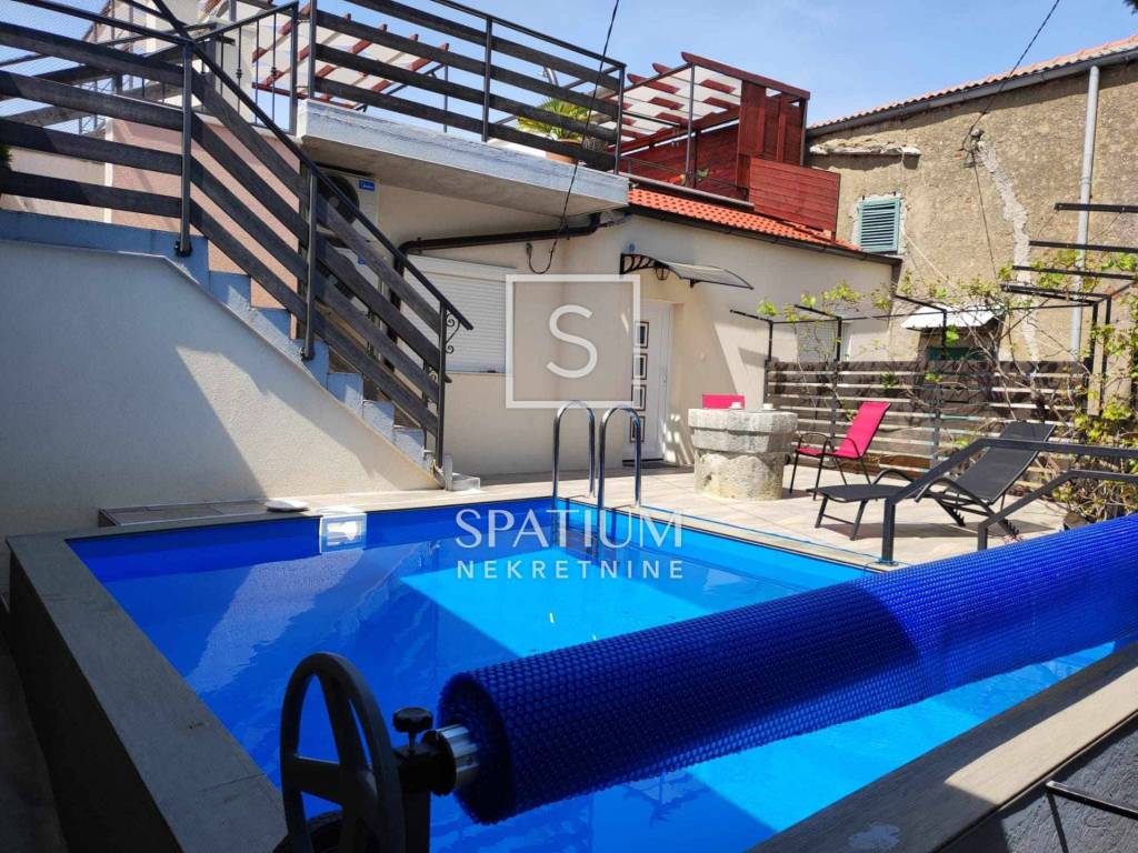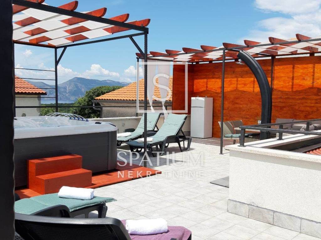 OTOK KRK, PINEZIĆI, u ponudi imamo kamenu kuću u nizu s grijanim bazenom i jacuzzijem smještenu na privlačnoj lokaciji u blizini mora i plaže, beach-bara i restorana.