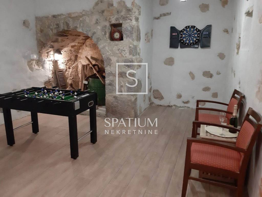 Kombinacija kamene primorske kuće i modernog luksuza sastoji se od četiri klimatizirane spavaće sobe s vlastitim kupaonicama te dva toaleta, prostrane moderne kuhinje opremljene u američkom stilu s blagovaonicom, velikog dnevnog boravka, game rooma za druženje i zabavne trenutke s obitelji i prijateljima te uređenog vrta s roštiljem.