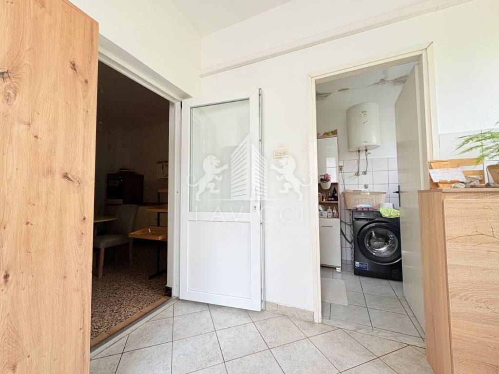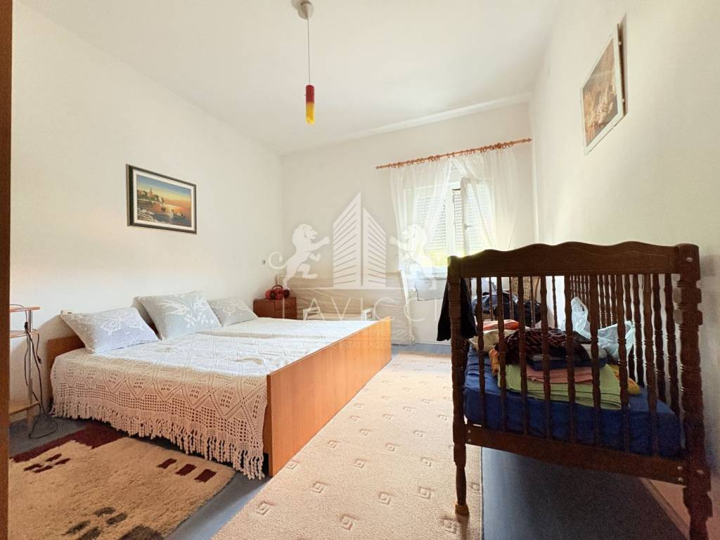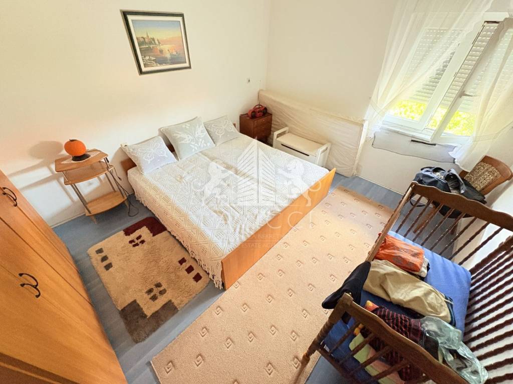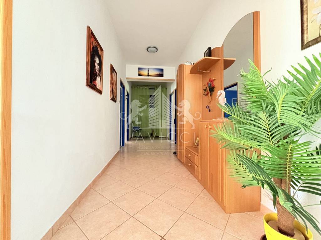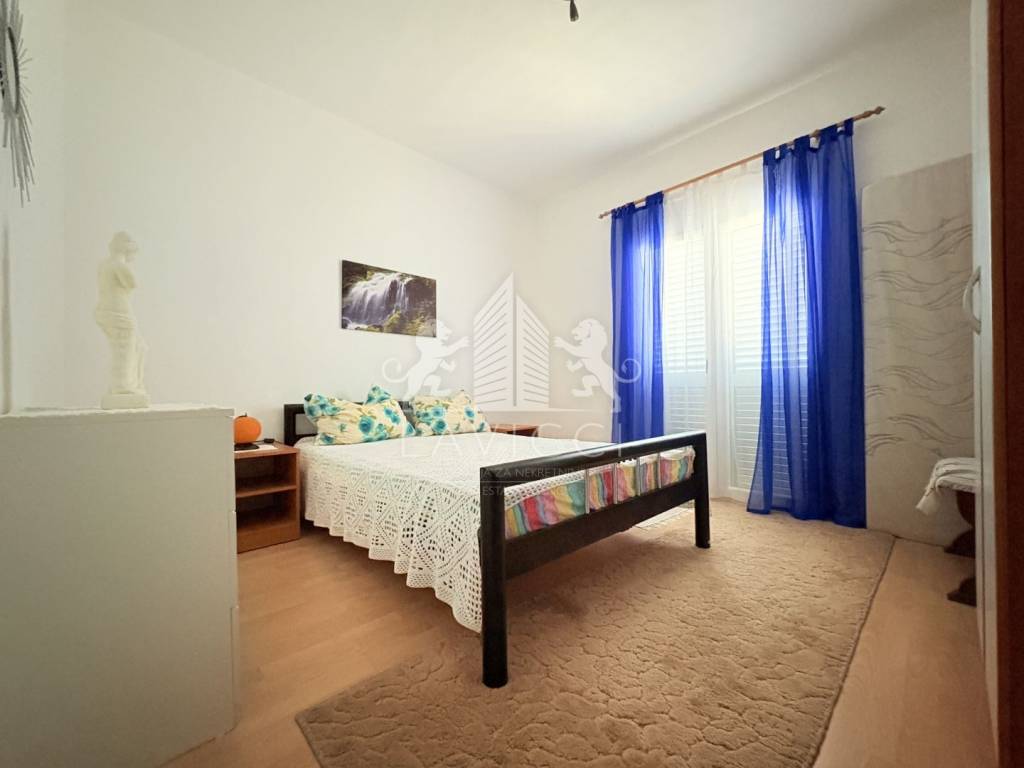 Prodaje se namještena. Postavljena je PVC stolarija s ALU roletama i ALU griljama. Podne obloge su kombinacija keramike i laminata.